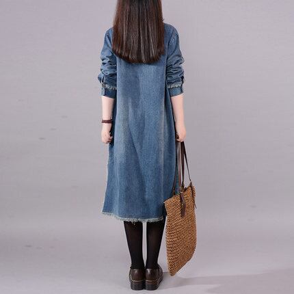 おしゃれな雰囲気を醸し出すミディアム丈デニムワンピース。