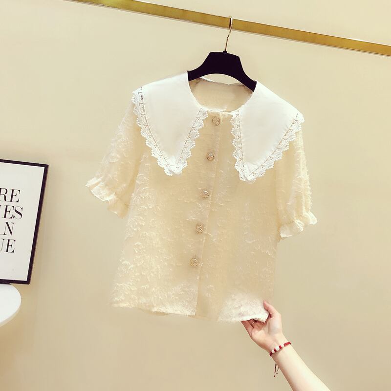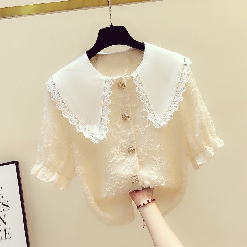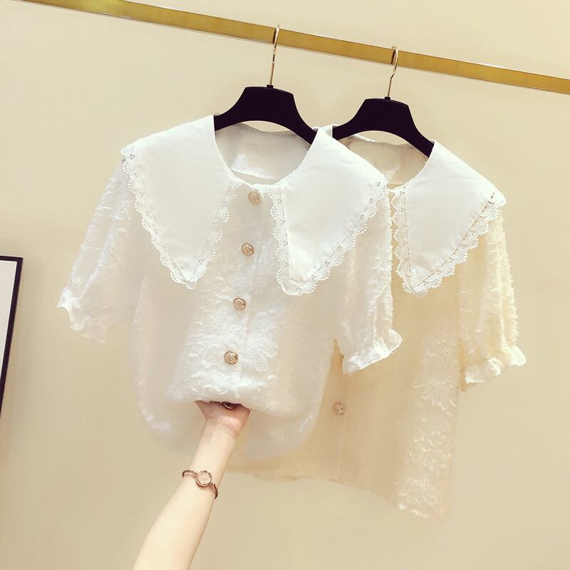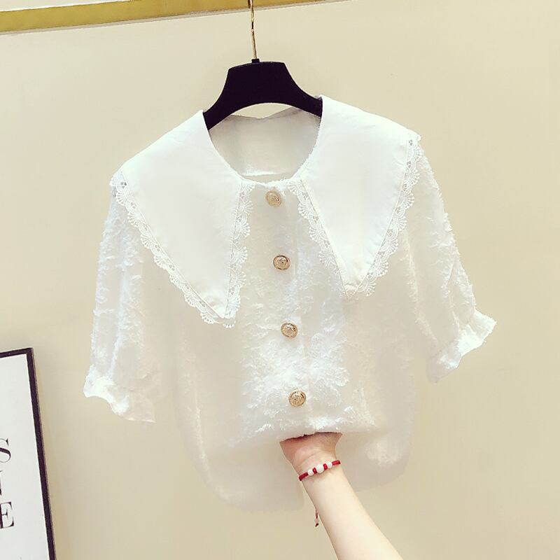 トップス シャツ ブラウス ショート丈 5分袖 ビックカラー 前開き デザインボタン かわいい 大人可愛い きれいめ シンプル 上品 おしゃれ かっこいい レトロ きちんと こなれ感 個性的 主役級 存在感 抜け感 春 夏 キュート ナチュラル ベーシック ガーリー 無地 レディース 女性用 ママ OL 通勤 オフィス 学生 通学 デート お出かけ お泊まり イベント 女子会 休日 アウトドア カフェ ショッピング レストラン コンパ レイヤード 重ね着 普段使い 着回し S M L XL モテ