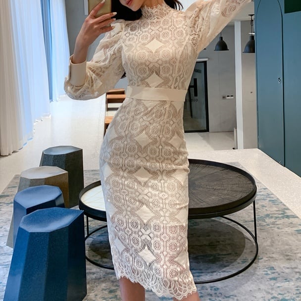 ワンピース ミディアム丈ワンピース タイトワンピース 長袖 パフスリーブ ハイネック ウエストマーク 刺繡 シースルー ミディアム丈 かわいい 大人可愛い きれいめ シンプル 上品 おしゃれ かっこいい レトロ きちんと こなれ感 個性的 主役級 存在感 抜け感 オールシーズン ナチュラル ベーシック キュート エレガント レディース 女性用 ママ デート お出かけ お泊まりデート イベント 女子会 休日 レストラン リゾート コンパ パーティー 二次会 普段使い 着回し S M L XL モテ