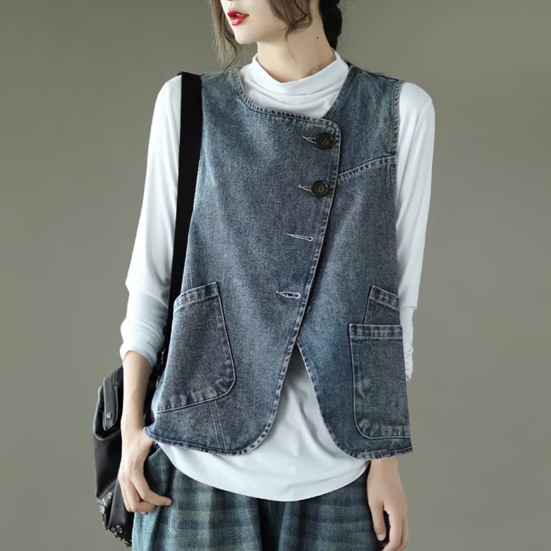 トップス ベスト デニムベスト ミディアム丈 前開き ボタン ポケット デニム かわいい 大人可愛い きれいめ シンプル 上品 おしゃれ かっこいい レトロ きちんと こなれ感 個性的 主役級 存在感 抜け感 オールシーズン ナチュラル ベーシック キュート メンズライク 無地 レディース 女性用 ママ OL 通勤 オフィス 学生 通学 デート お出かけ お泊まり イベント 女子会 休日 旅行 アウトドア カフェ ショッピング レストラン コンパ レイヤード 重ね着 普段使い 着回し デイリー L XL