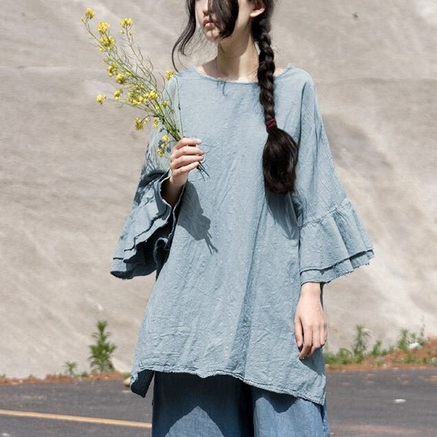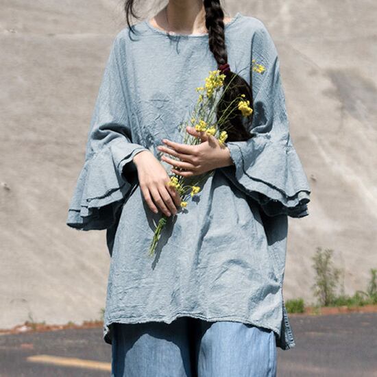トップス シャツ プルオーバー ミディアム丈 7分袖 ベルスリーブ ラウンドネック かわいい 大人可愛い きれいめ シンプル 上品 おしゃれ かっこいい レトロ ラフ ルーズ こなれ感 個性的 主役級 存在感 抜け感 春 夏 キュート ナチュラル ベーシック メンズライク 無地 レディース 女性用 ママ マタニティ OL 通勤 学生 通学 デート お出かけ お泊まり イベント 女子会 休日 アウトドア カフェ ショッピング レストラン コンパ レイヤード 重ね着 普段使い 着回し ワンサイズ ゆったり
