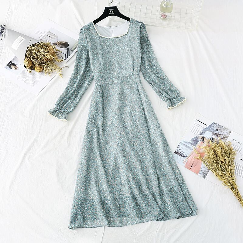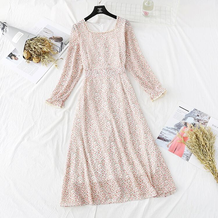ワンピース ミディアム丈ワンピース シフォンワンピース 長袖 スクエアネック ミディアム丈 ウエストマーク セミフレア かわいい 大人可愛い きれいめ シンプル 上品 おしゃれ かっこいい レトロ きちんと こなれ感 個性的 主役級 存在感 抜け感 春 夏 ナチュラル ベーシック キュート ガーリー 小花柄 レディース 女性用 ママ デート お出かけ お泊まりデート イベント 女子会 休日 カフェ ショッピング レストラン 旅行 リゾート コンパ レイヤード 重ね着 普段使い 着回し S M L XL