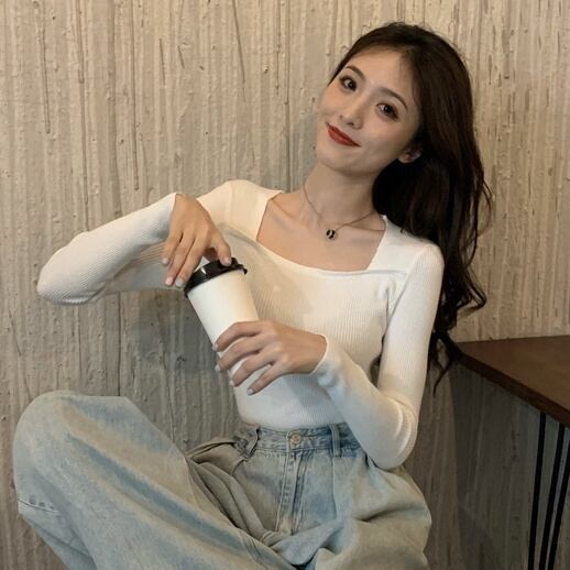 トップス ニットソー プルオーバー ミディアム丈 長袖 スクエアネック タイト ニット かわいい 大人可愛い きれいめ シンプル 上品 おしゃれ かっこいい レトロ きちんと こなれ感 個性的 主役級 存在感 抜け感 秋 冬 キュート ナチュラル ベーシック メンズライク 無地 レディース 女性用 ママ OL 通勤 オフィス 学生 通学 デート お出かけ お泊まり イベント 女子会 休日 アウトドア カフェ ショッピング レストラン コンパ レイヤード 重ね着 普段使い デイリー 着回し S M L