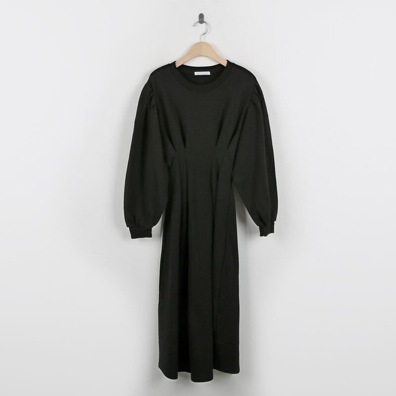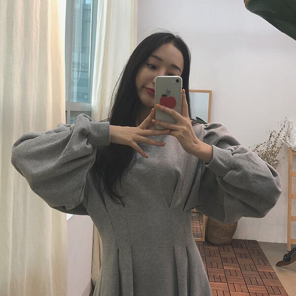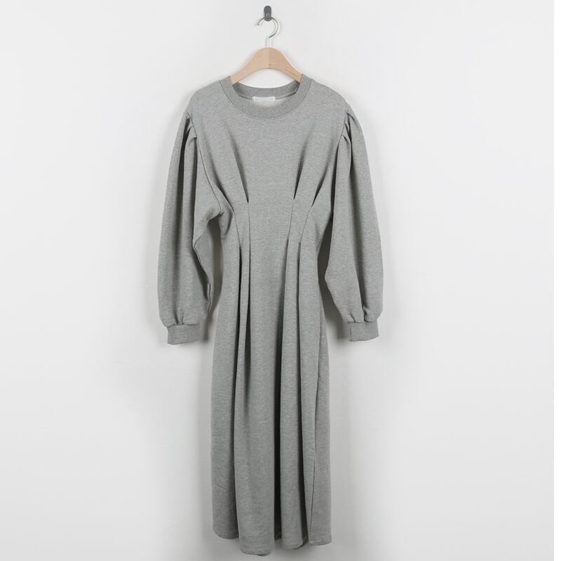 ボリューム袖がポイントのスウェットワンピースは、シンプルさと個性を兼ね備えた一枚。