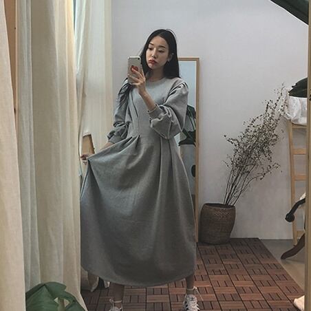 ワンピース ロングワンピース スウェットワンピース 長袖 ボリューム袖 ウエストマーク かわいい 大人可愛い きれいめ シンプル 上品 おしゃれ かっこいい レトロ ラフ ルーズ きちんと こなれ感 個性的 主役級 存在感 抜け感 秋 冬 ナチュラル ベーシック キュート メンズライク 無地 レディース 女性用 ママ マタニティ デート お出かけ お泊まりデート イベント 女子会 休日 カフェ ショッピング レストラン 旅行 リゾート コンパ レイヤード 重ね着 普段使い 着回し S M L ゆったり