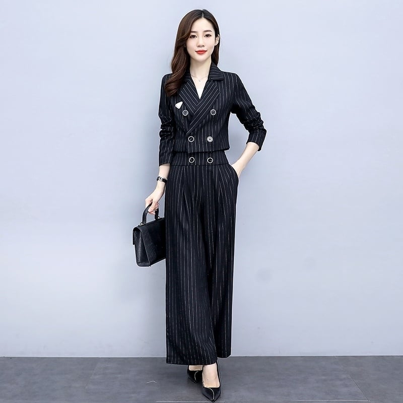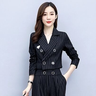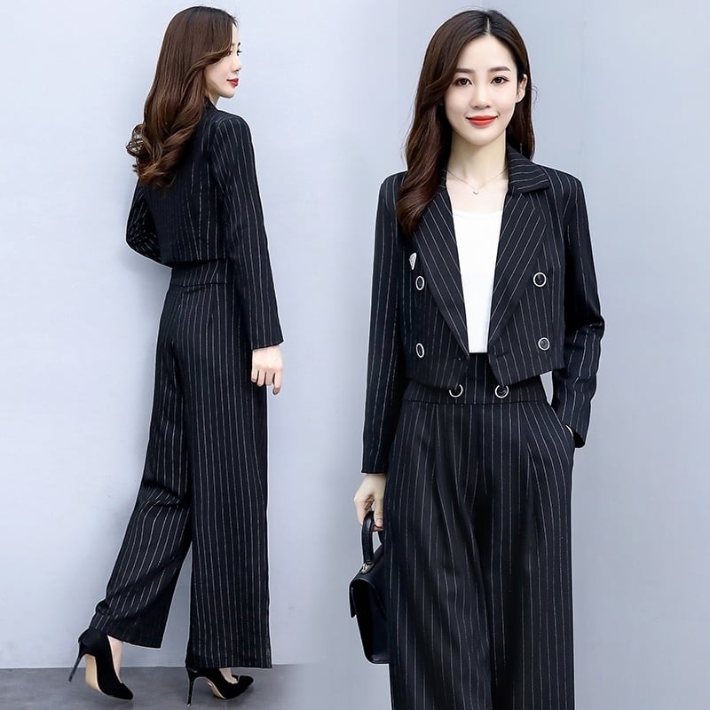2点セット セットアップ パンツスーツ トップス ミディアム丈 ジャケット ショート丈 前開き ロングパンツ ハイウエスト かわいい 大人可愛い きれいめ シンプル 上品 おしゃれ かっこいい レトロ きちんと こなれ感 個性的 主役級 存在感 抜け感 オールシーズン ナチュラル ベーシック フォーマル ストライプ柄 レディース 女性用 ママ OL 通勤 オフィス 学生 通学 デート お出かけ お泊まり イベント 女子会 休日 カフェ ショッピング レストラン コンパ 普段使い 着回し S M L XL