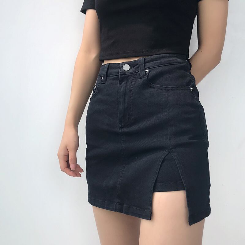 スカパン レディース スカート パンツ デニム デニムスカート ショート タイト スリム 細身 ストレート サイドスリット ハイウエスト かわいい 大人可愛い きれいめ シンプル カジュアル おしゃれ かっこいい レトロ こなれ感 ラフ ガーリー ルーズ ラブリー キュート 無地 夏 学生 学校 デート お出かけ 女子会 ショッピング 韓国 コーデ 楽ちん 脚長 普段使い 着回し モテ 清楚 トレンド インスタ映え S M L ブラック グレー ライトブルー