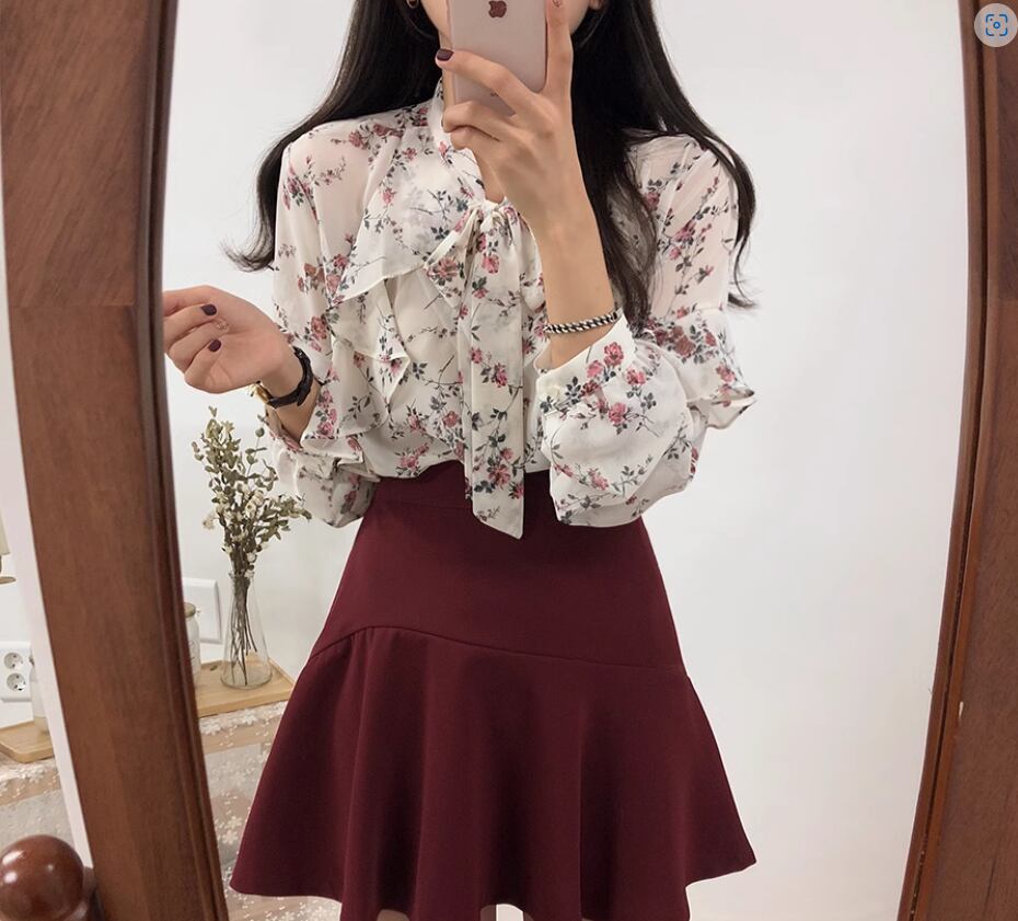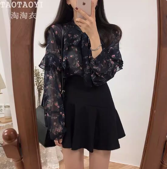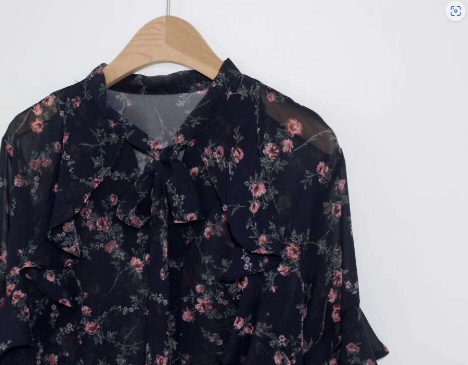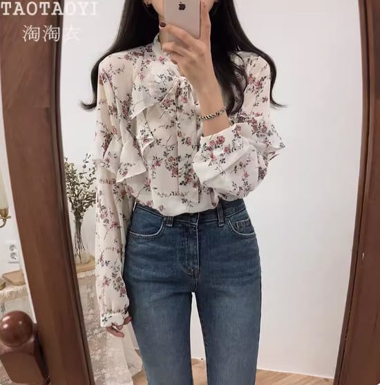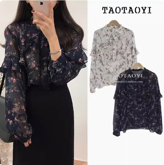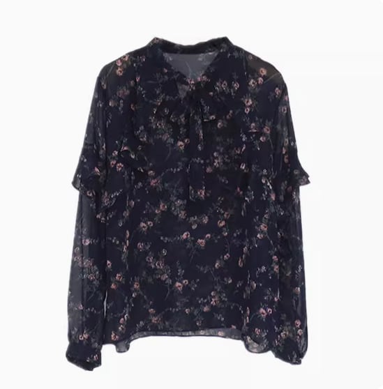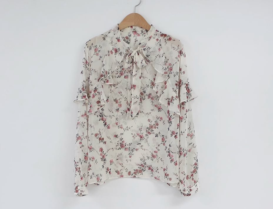 透け感のあるシフォン生地が可愛い花柄ブラウス