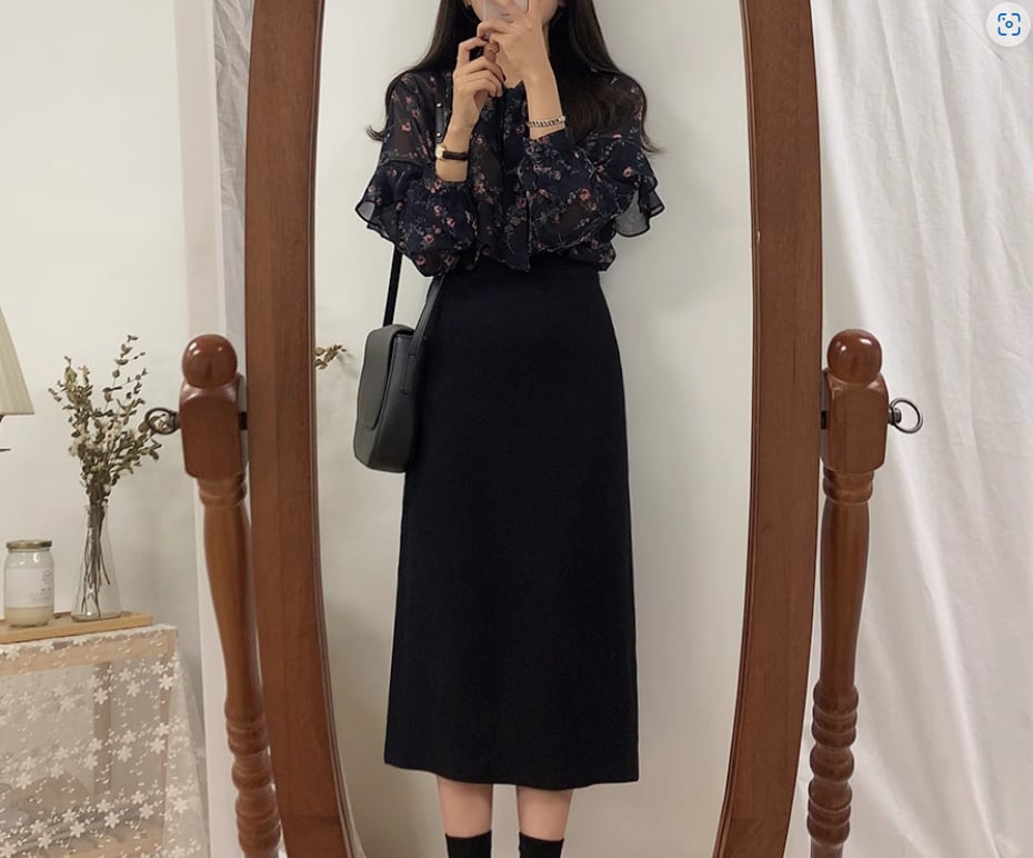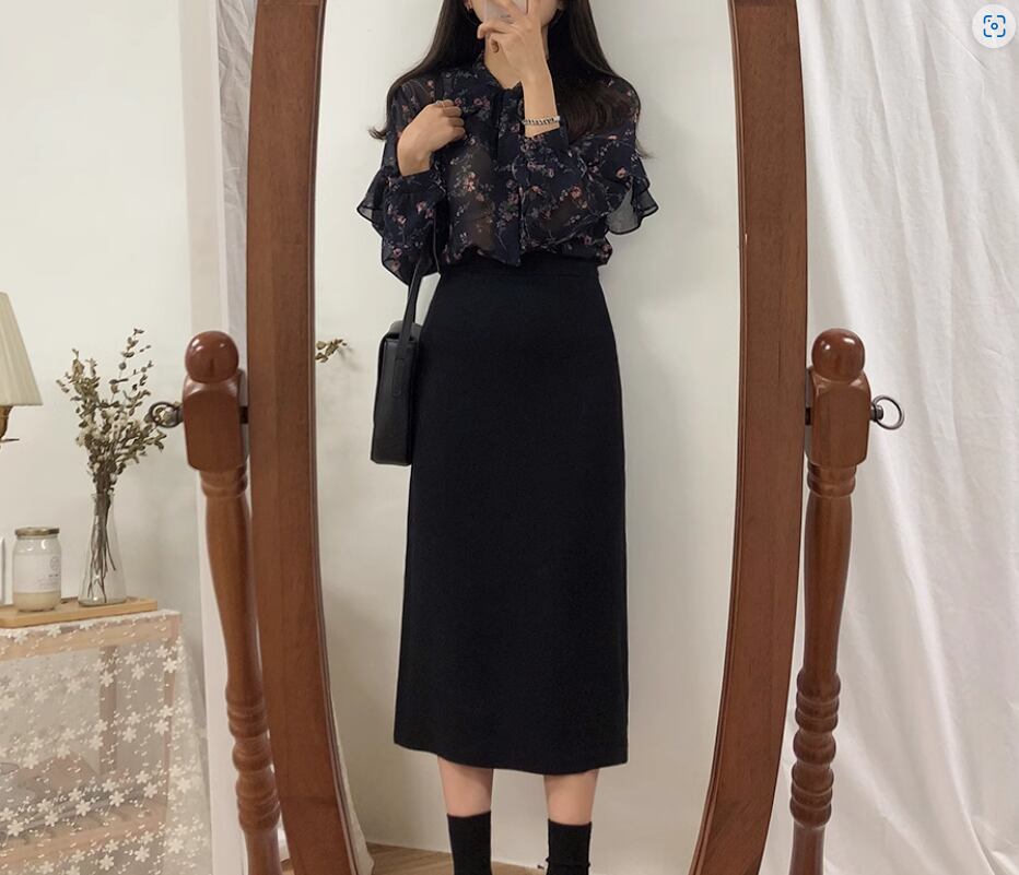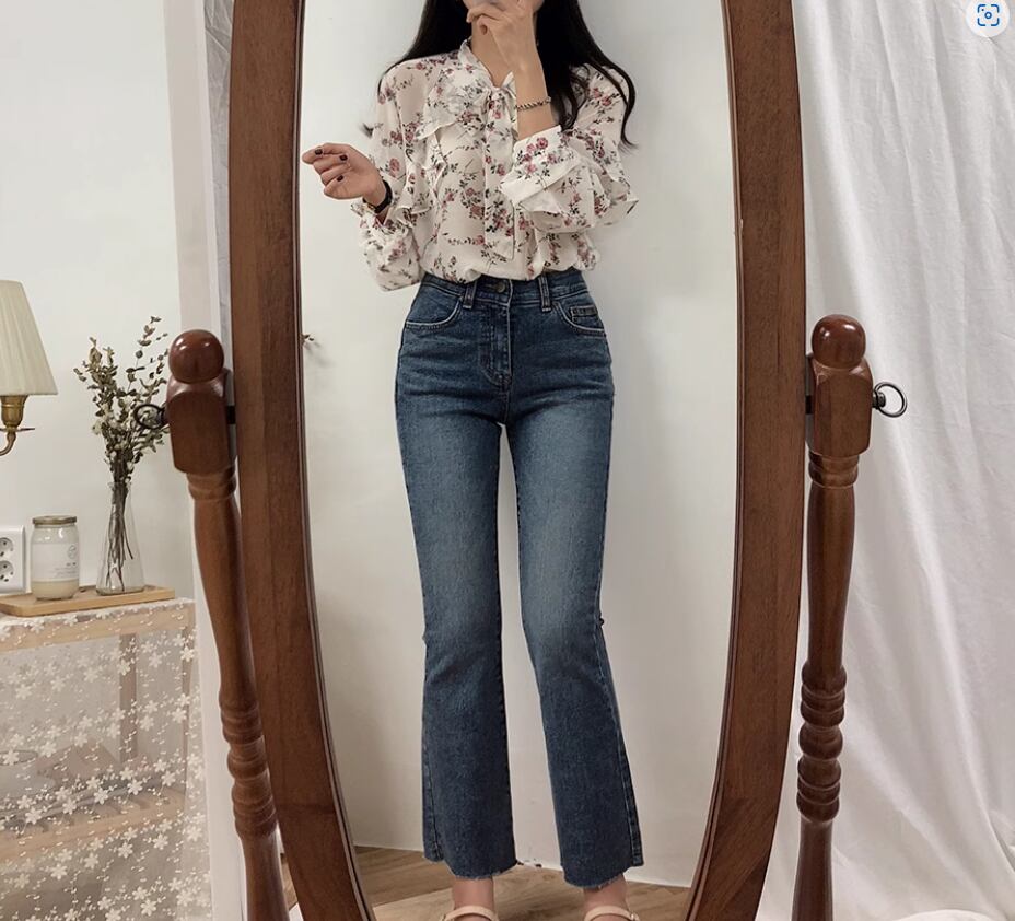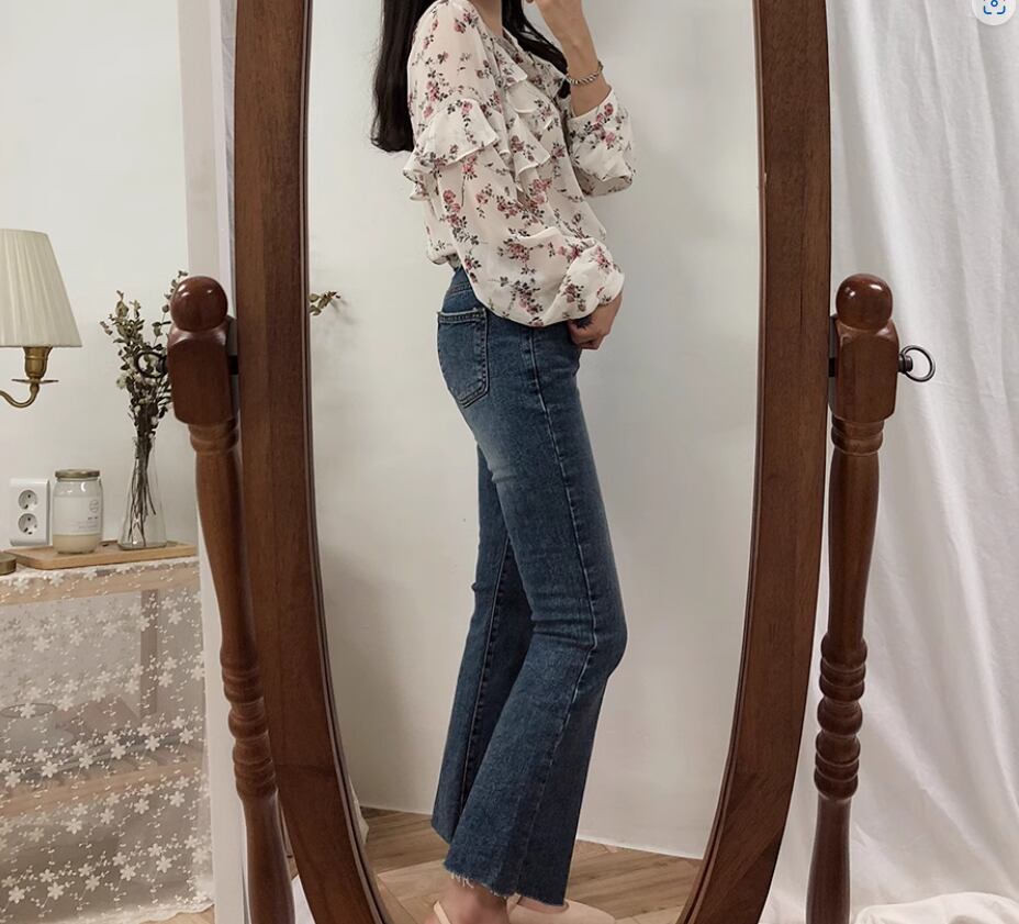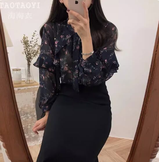 透け感のあるシフォン生地が可愛い花柄ブラウス
