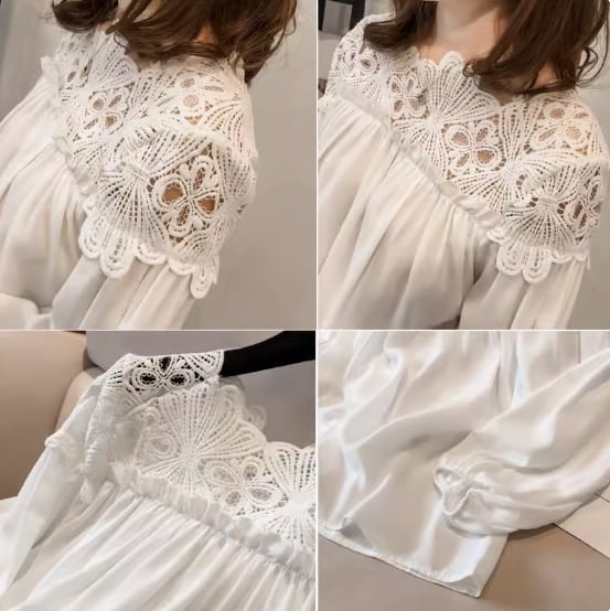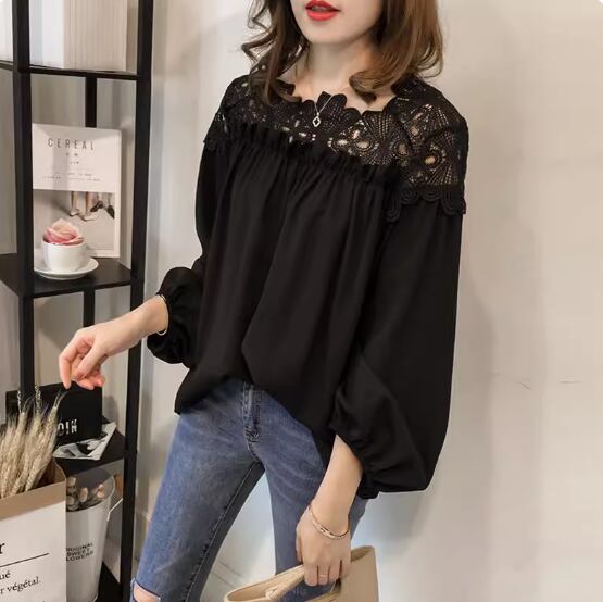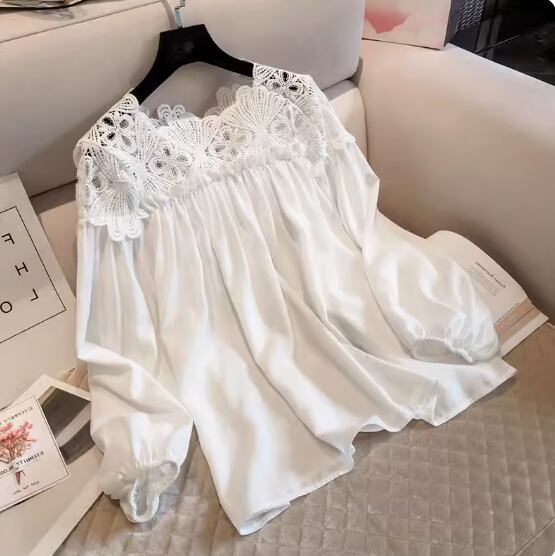 トップス シャツ ブラウス 白シャツ 白トップス 袖あり 長袖 ボリューム袖 レース かわいい 大人可愛い シンプル カジュアル おしゃれ お洒落 ガーリー とろみ感 無地 春 秋 10代 20代 30代 40代 レディース 女性用 お出かけ 休日 着回し 普段使い M L XL 2XL ゆったり 白 ホワイト 黒 ブラック