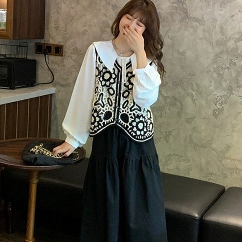透かし編みのデザインと刺繡が施された、透け感のある素材がかわいい大人可愛いアイテムです。