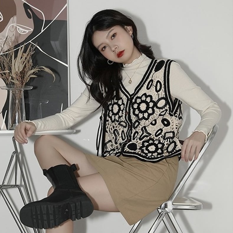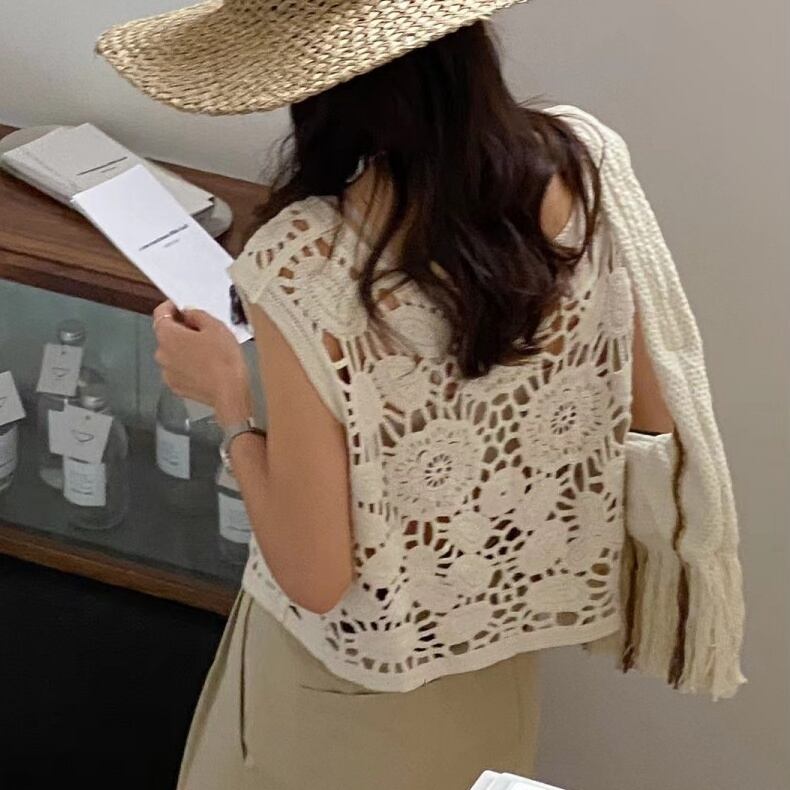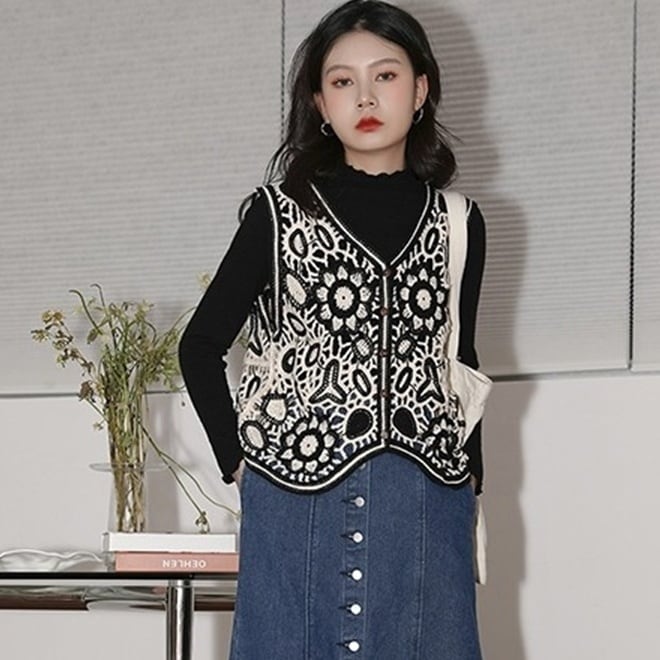 トップス ベスト ショート丈 Vネック 前開き ボタン 透かし編み 刺繡 透け感 かわいい 大人可愛い きれいめ シンプル 上品 おしゃれ かっこいい レトロ きちんと こなれ感 個性的 主役級 存在感 抜け感 オールシーズン ナチュラル ベーシック キュート メンズライク レディース 女性用 ママ OL 通勤 オフィス 学生 通学 デート お出かけ お泊まり イベント 女子会 休日 旅行 アウトドア カフェ ショッピング レストラン コンパ レイヤード 重ね着 普段使い 着回し デイリー ワンサイズ