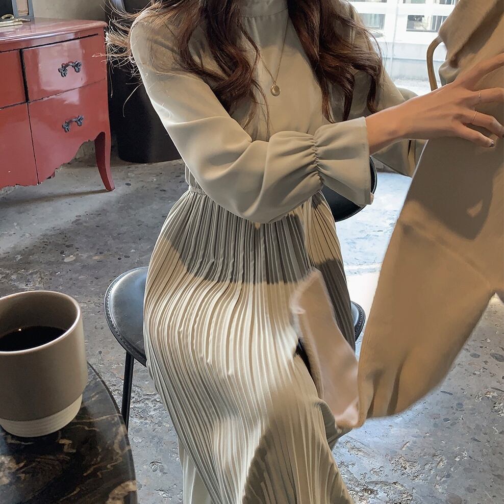 ワンピース ミモレ丈ワンピース 長袖 ハイネック フリル ウエストマーク プリーツスカート かわいい 大人可愛い きれいめ シンプル 上品 おしゃれ かっこいい レトロ こなれ感 個性的 主役級 存在感 抜け感 春 秋 ナチュラル ベーシック キュート エレガント 無地 レディース 女性用 ママ OL 通勤 オフィス学生 通学 デート お出かけ お泊まりデート イベント 女子会 休日 カフェ ショッピング レストラン 旅行 リゾート コンパ レイヤード 重ね着 普段使い 着回し S M L XL