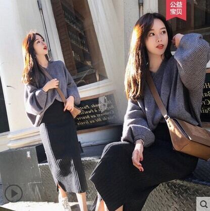 2点セット レディース スカート トップス ニット セーター ミモレ 長袖 Vネック ゆったり ストレート かわいい 大人可愛い きれいめ シンプル カジュアル おしゃれ レトロ こなれ感 ラフ ガーリー ラブリー キュート 無地 秋 通勤 学生 学校 デート お出かけ レストラン 女子会 ショッピング 韓国 コーデ 楽ちん 体型カバー 脚長 普段使い 着回し モテ トレンド 流行 インスタ映え S M L XL ブラック グレー アプリコット