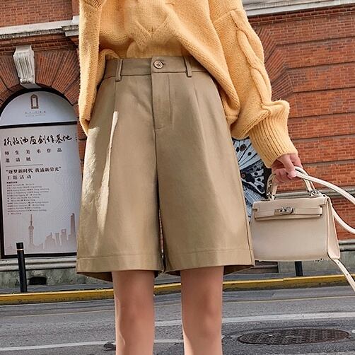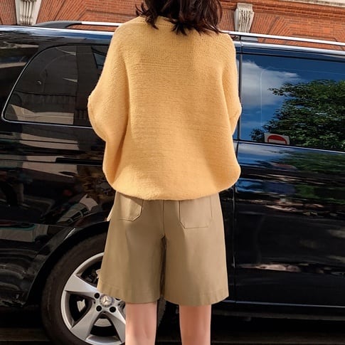大人可愛い雰囲気漂う、Aラインのミディアム丈ハーフパンツ