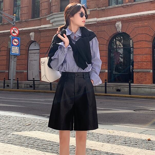 ボトムス パンツ ズボン ハーフパンツ ポケット フェイクレザー ミディアム丈 Aライン かわいい 大人可愛い きれいめ シンプル カジュアル 上品 おしゃれ かっこい 大人女子 こなれ感 きちんと 個性的 主役級 存在感 オールシーズン クール ナチュラル ベーシック メンズライク 無地 レディース 女性用 OL 通勤 学生 通学 デート お出かけ お泊まり イベント 女子会 旅行 休日 カフェ ショッピング レストラン コンパ 普段使い 着回し デイリー 脚長 美脚 S M XL 3XL モテ