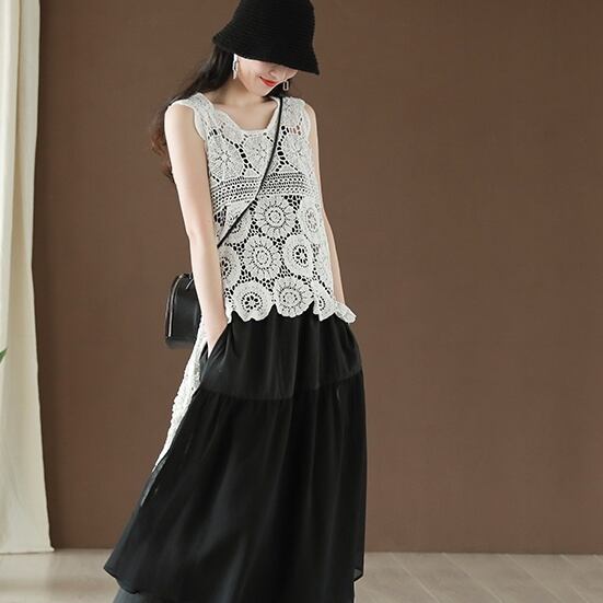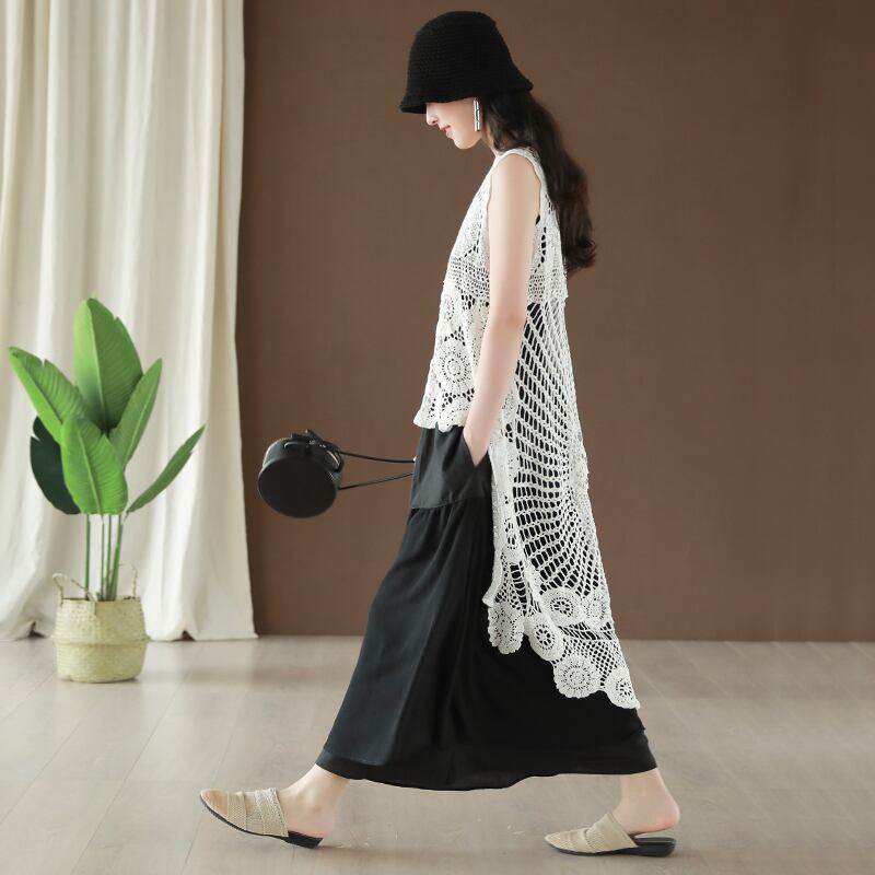 トップス ベスト プルオーバー ロング丈 透かし編み 刺繡 透け感 フィッシュテール かわいい 大人可愛い きれいめ シンプル 上品 おしゃれ かっこいい レトロ きちんと こなれ感 個性的 主役級 存在感 抜け感 オールシーズン ナチュラル ベーシック キュート メンズライク レディース 女性用 ママ OL 通勤 オフィス 学生 通学 デート お出かけ お泊まり イベント 女子会 休日 旅行 アウトドア カフェ ショッピング レストラン コンパ レイヤード 重ね着 普段使い 着回し デイリー ワンサイズ