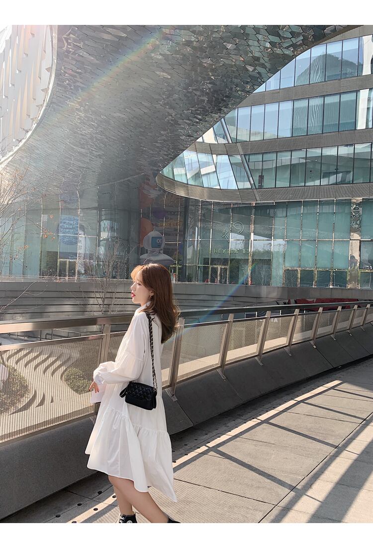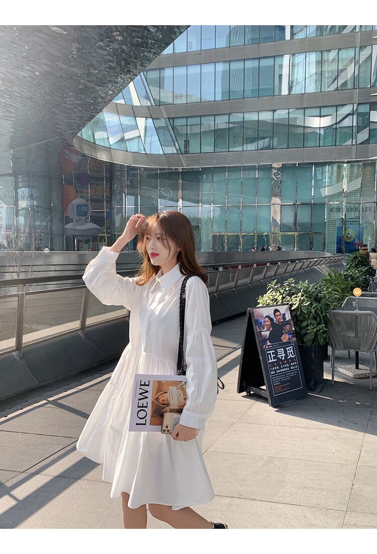 大人可愛いシャツワンピースが登場しました!シンプルなデザインながらも、フレアの広がりが女性らしさを引き立てます。個性的な切り替えデザインやボリューム袖がおしゃれなアクセントになっています。前開きで着やすく、襟付きなので上品な印象も◎