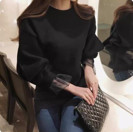 レディース トップス カットソー 袖あり 長袖 ボリューム袖 フレアスリーブ ラウンドネック クルーネック 襟なし セミフレア 切り替えデザイン ドッキング 透け感 シースルー かわいい 大人可愛い きれいめ シンプル カジュアル 上品 おしゃれ お洒落 レトロ 大人女子 こなれ感 ラフ ラブリー キュート ガーリー 個性的 クール モード系 エレガント モダン 主役級 存在感 抜け感 レディース デート お出かけ 女子会 休日 着回し 普段使い ファッション コーデ スタイル モテ プレゼント 定番