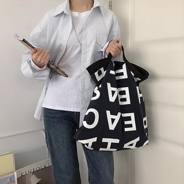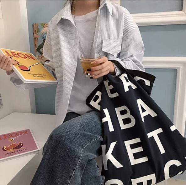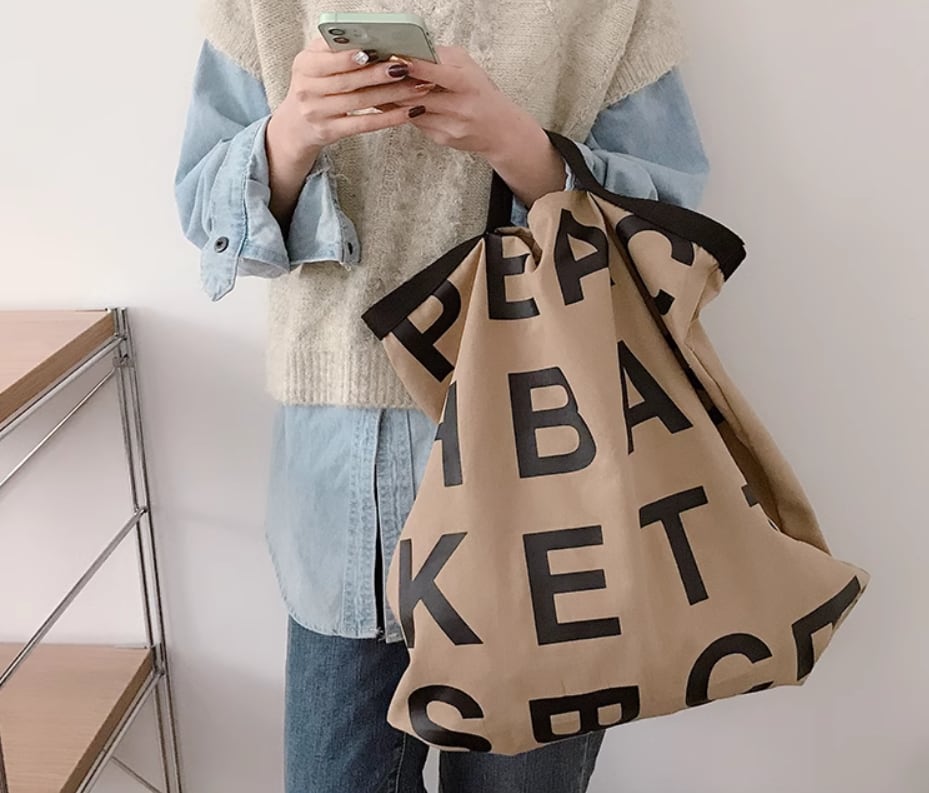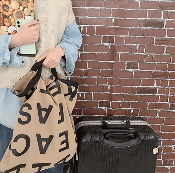 大きめロゴとくたっとした生地感が可愛いキャンバストートバッグ