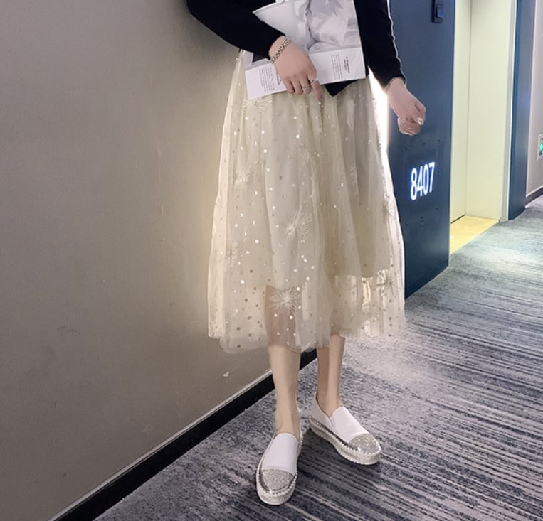 キラキラビジューと網目デザインがおしゃれなスリッポン
