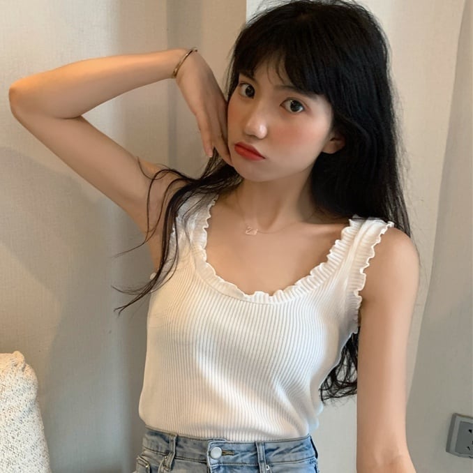 トップス タンクトップ プルオーバー ミディアム丈 Uネック 袖フリル インナー かわいい 大人可愛い きれいめ シンプル 上品 おしゃれ かっこいい レトロ きちんと こなれ感 個性的 主役級 存在感 抜け感 オールシーズン キュート ナチュラル ベーシック ガーリー 無地 レディース 女性用 ママ OL 通勤 オフィス 学生 通学 デート お出かけ お泊まり イベント 女子会 休日 アウトドア カフェ ショッピング レストラン コンパ レイヤード 重ね着 普段使い デイリー 着回し ワンサイズ