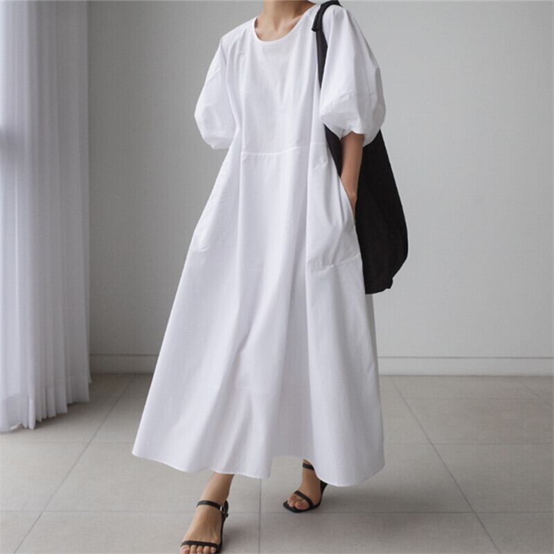 ワンピース マキシ丈ワンピース 半袖 ボリューム袖 ラウンドネック ポケット マキシ丈 かわいい 大人可愛い きれいめ シンプル おしゃれ かっこいい レトロ ラフ ルーズ こなれ感 個性的 主役級 存在感 抜け感 春 夏 ナチュラル ベーシック キュート エレガント レディース 女性用 ママ マタニティ OL 通勤 学生 通学 デート お出かけ お泊まりデート イベント 女子会 休日 カフェ ショッピング レストラン 旅行 リゾート コンパ レイヤード 重ね着 普段使い 着回し 脚長 S M L XL