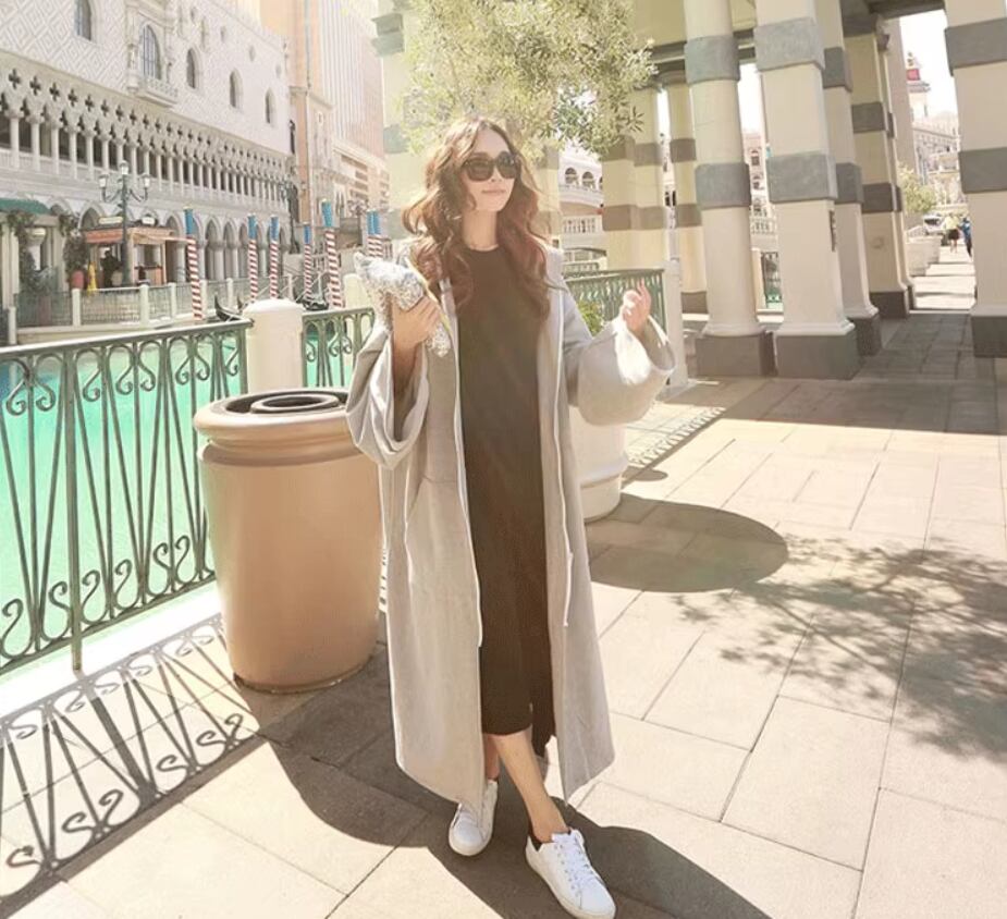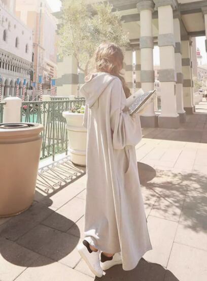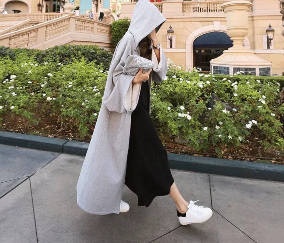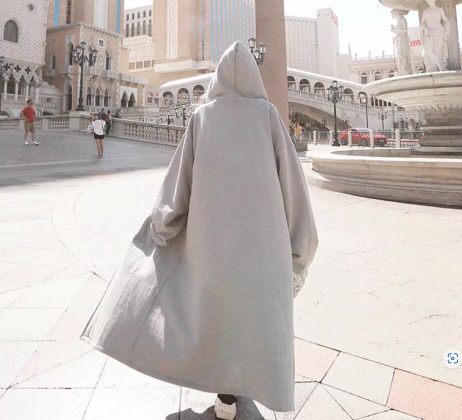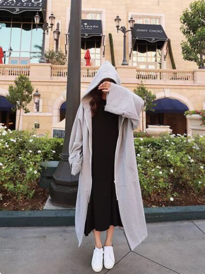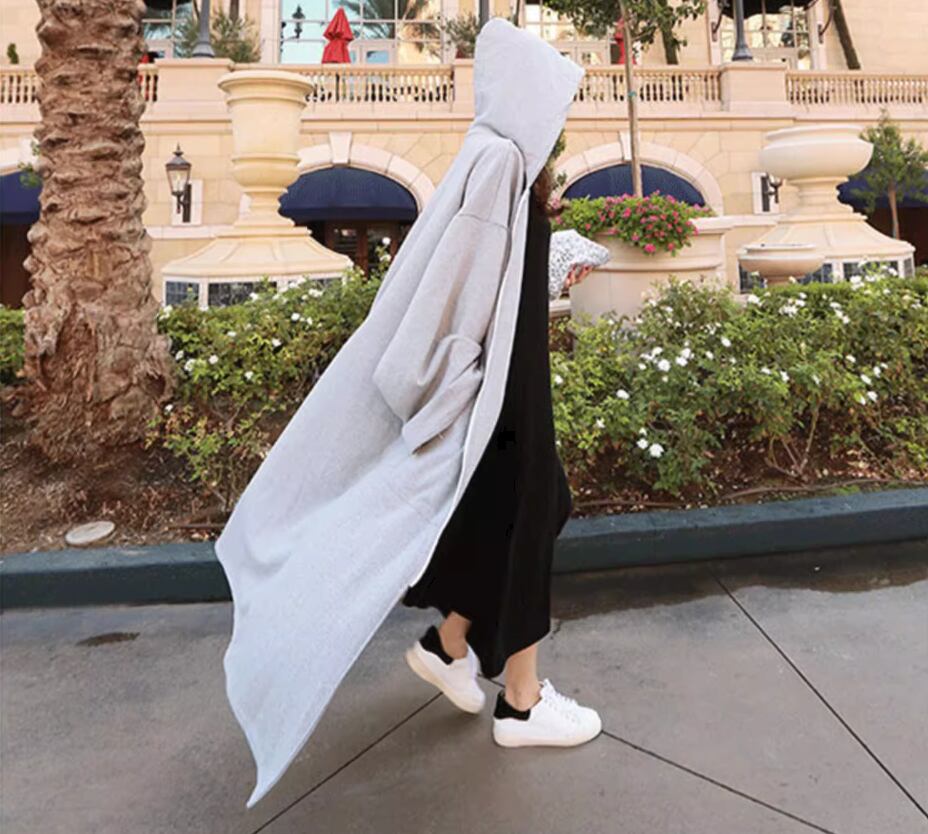 ルーズシルエットが可愛いフード付きロングパーカー