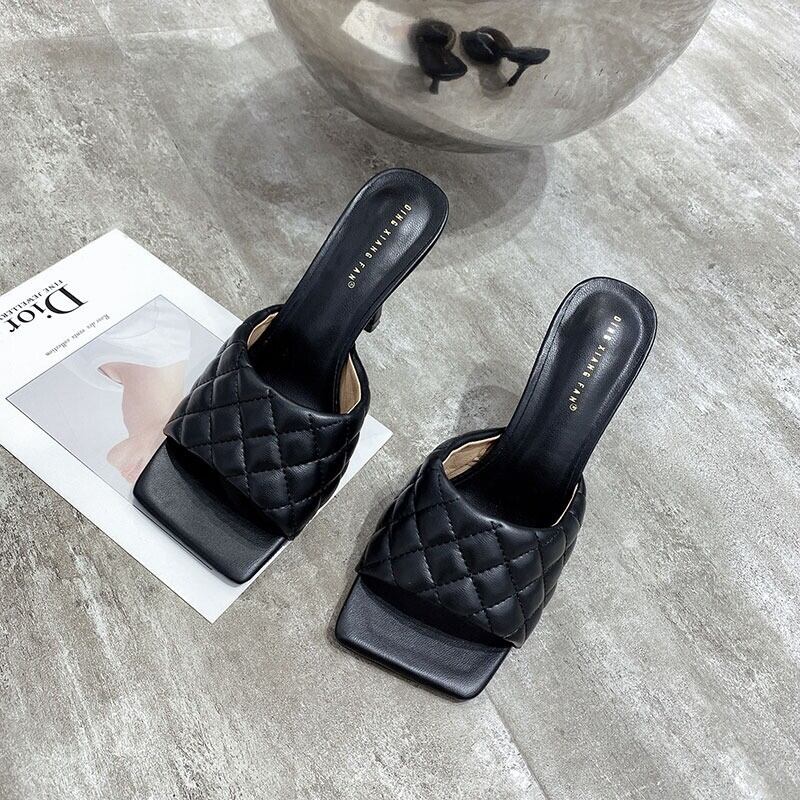 サンダル ミュール レディース ハイヒール ピンヒール 9cm スクエアトゥ レザー キルティング かわいい 大人可愛い シンプル カジュアル 上品 おしゃれ エレガント キュート クール モード セクシー モダン 存在感 こなれ感 格子柄 春 夏 秋 デート お出かけ リゾート 旅行 ホテル レストラン 休日 デイリー 普段使い スタイルアップ 22.5cm 23.0cm 23.5cm 24.0cm 24.5cm 25.0cm 小さい 大きい 白 黒 青 茶色 ホワイト ブラック ブルー ブラウン