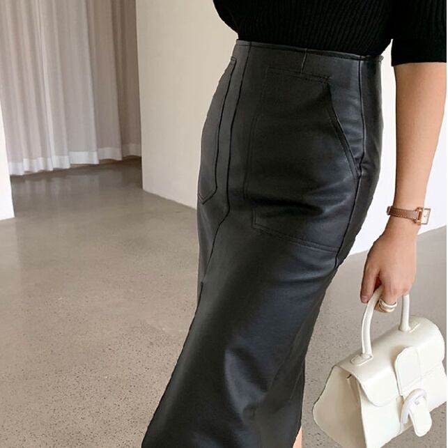 ボトムス スカート ミディアム丈スカート タイトスカート レザー ハイウエスト フロントスリット タイト かわいい 大人可愛い きれいめ シンプル カジュアル 上品 おしゃれ かっこい 大人女子 こなれ感 きちんと 個性的 主役級 存在感 クール ナチュラル ベーシック エレガント 無地 レディース 女性用 ママ OL 通勤 オフィス 学生 通学 デート お出かけ お泊まり イベント 女子会 旅行 休日 カフェ ショッピング レストラン コンパ 普段使い 着回し デイリー 脚長 S M L XL