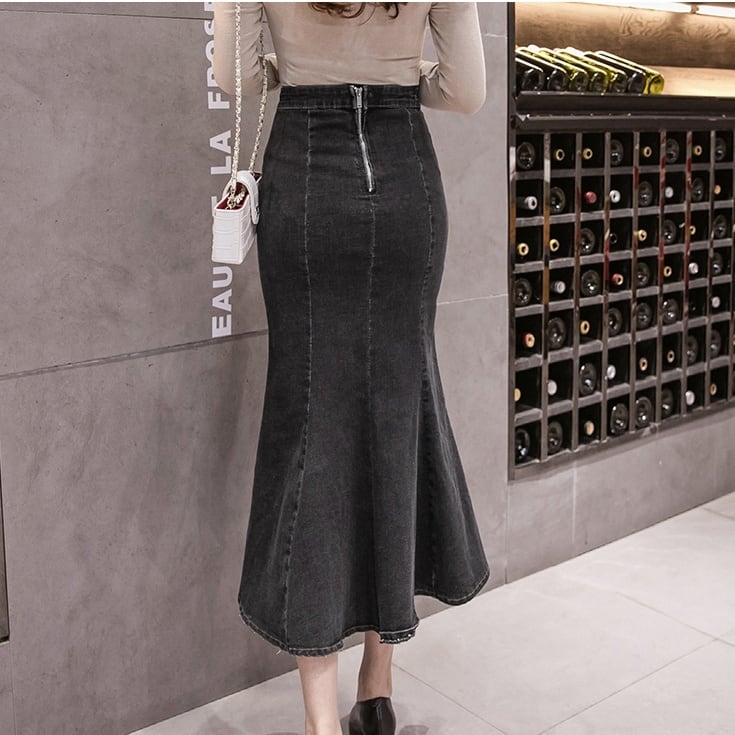 ボトムス スカート ミディアム丈スカート タイトスカート デニムスカート ハイウエスト フロントスリット マーメイドスカート かわいい 大人可愛い きれいめ シンプル カジュアル 上品 おしゃれ かっこい 大人女子 こなれ感 きちんと 個性的 主役級 存在感 クール ナチュラル ベーシック エレガント 無地 レディース 女性用 ママ OL 通勤 学生 通学 デート お出かけ お泊まり イベント 女子会 旅行 休日 カフェ ショッピング レストラン コンパ 普段使い 着回し デイリー 脚長 S M L XL