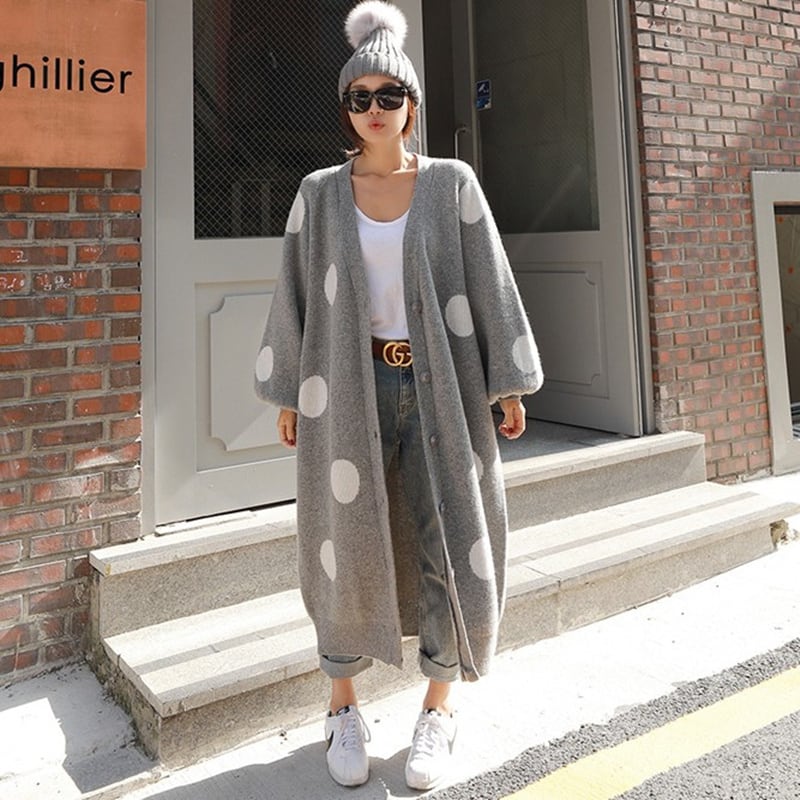 トップス カーディガン ロングカーディガン ロング丈 長袖 ボリューム袖 Vネック 前開き ボタン かわいい 大人可愛い きれいめ シンプル 上品 おしゃれ かっこいい レトロ きちんと こなれ感 個性的 主役級 存在感 抜け感 秋 冬 キュート ナチュラル ベーシック ドット柄 レディース 女性用 ママ マタニティ OL 通勤 学生 通学 デート お出かけ お泊まり イベント 女子会 休日 アウトドア カフェ ショッピング レストラン コンパ 普段使い 着回し ワンサイズ ゆったり 暖かい モテ