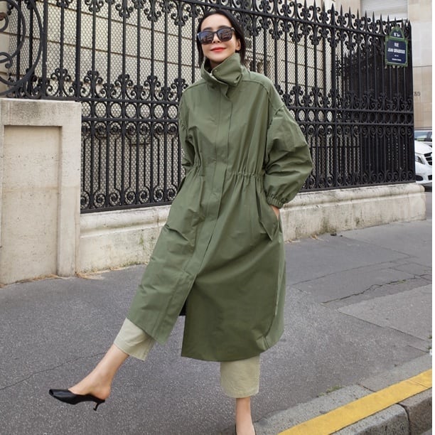 ウエストマークのベルトでメリハリを付けて、コーディネートのアクセントにもなります。