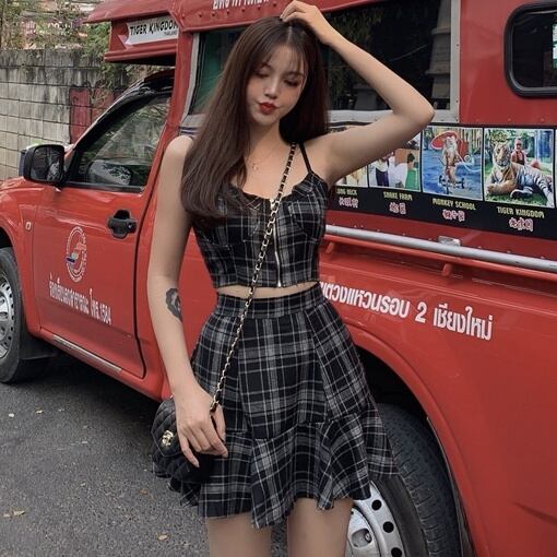 2点セット セットアップ キャミソール ショート丈 ファスナー ミニスカート ハイウエスト フレアスカート ミニ丈 フレア かわいい 大人可愛い きれいめ シンプル 上品 おしゃれ かっこいい レトロ きちんと こなれ感 個性的 主役級 存在感 抜け感 キュート ガーリー セクシー チェック柄 レディース 女性用 学生 通学 デート お出かけ お泊まり イベント 女子会 休日 旅行 リゾート カフェ ショッピング レストラン コンパ 普段使い 着回し デイリー コスプレ 脚長 美脚 S M