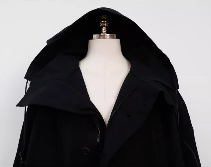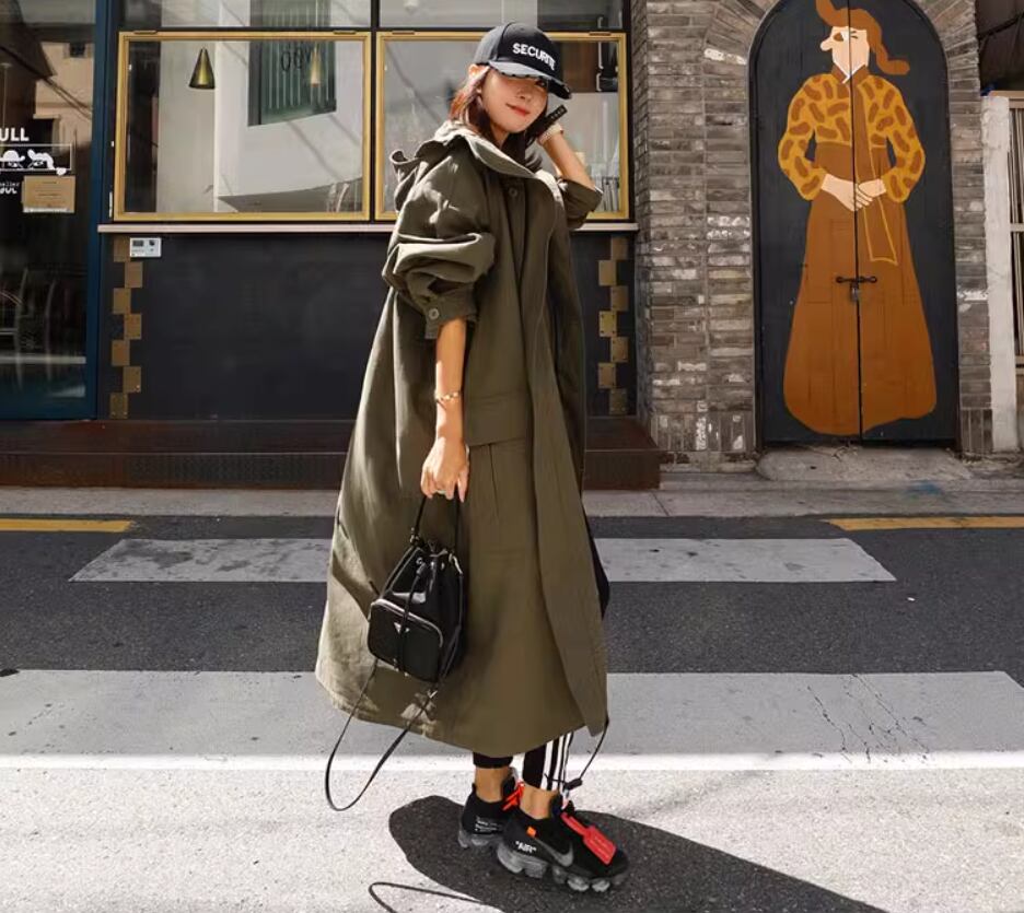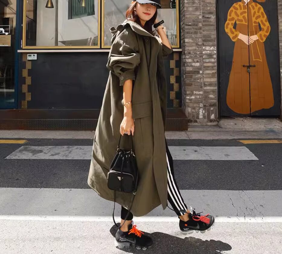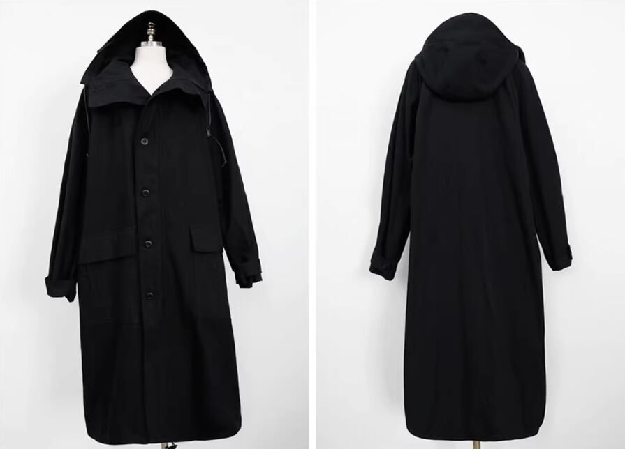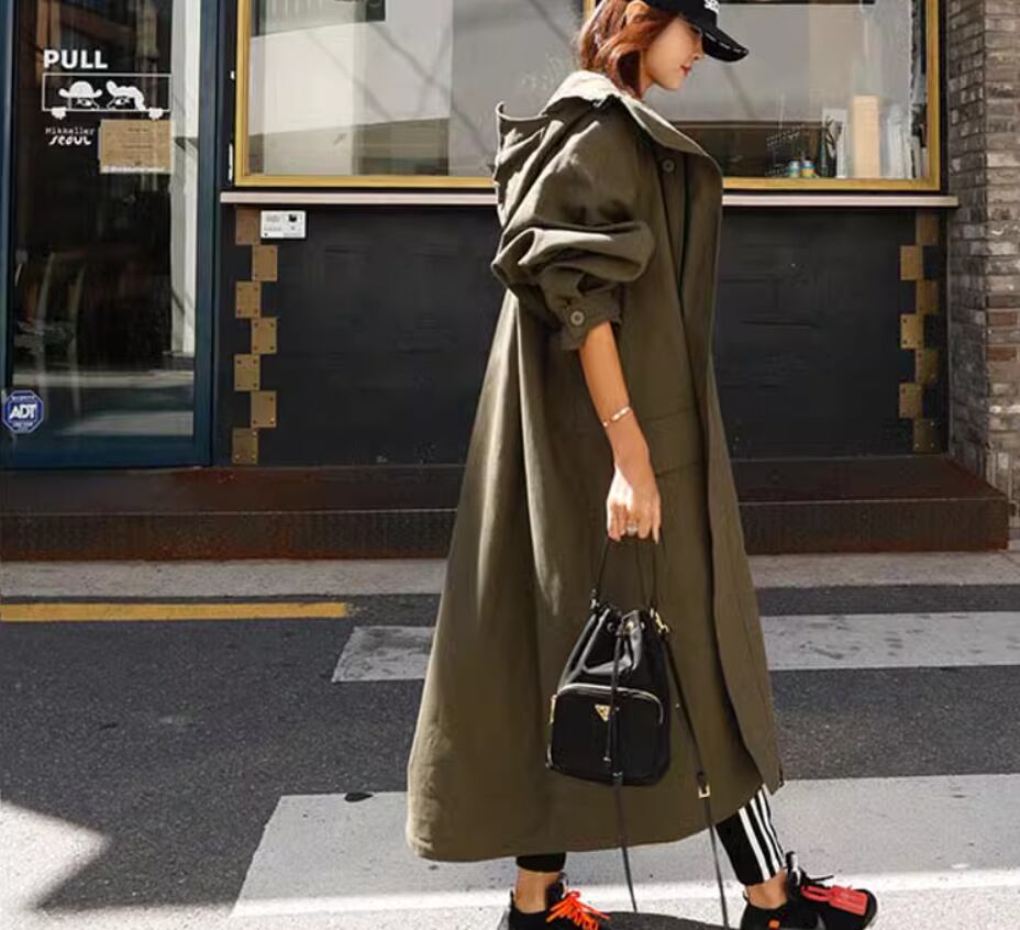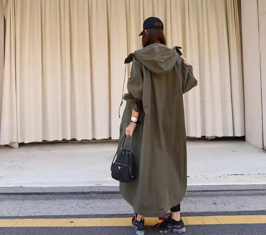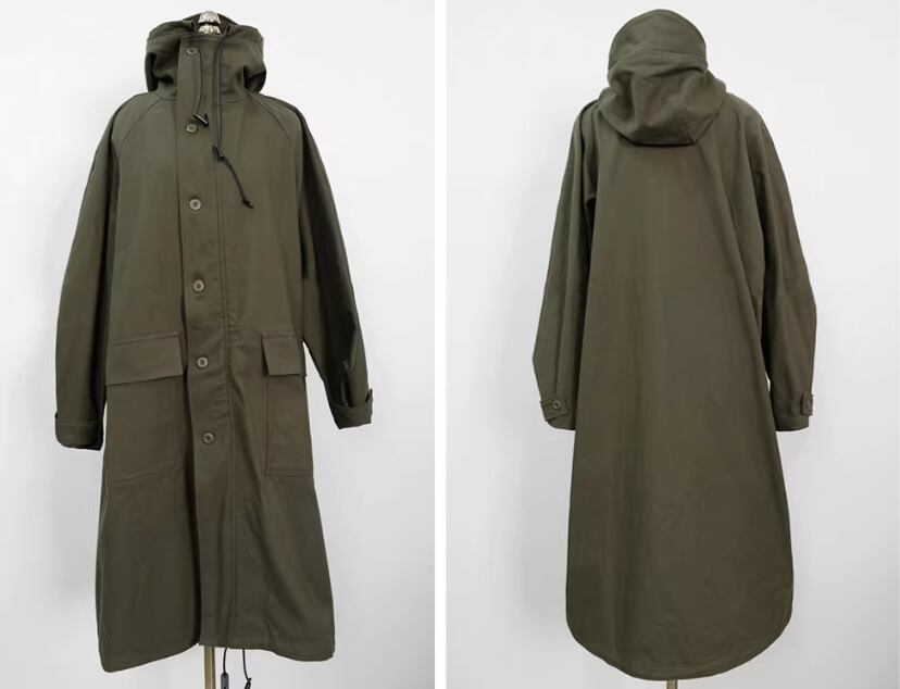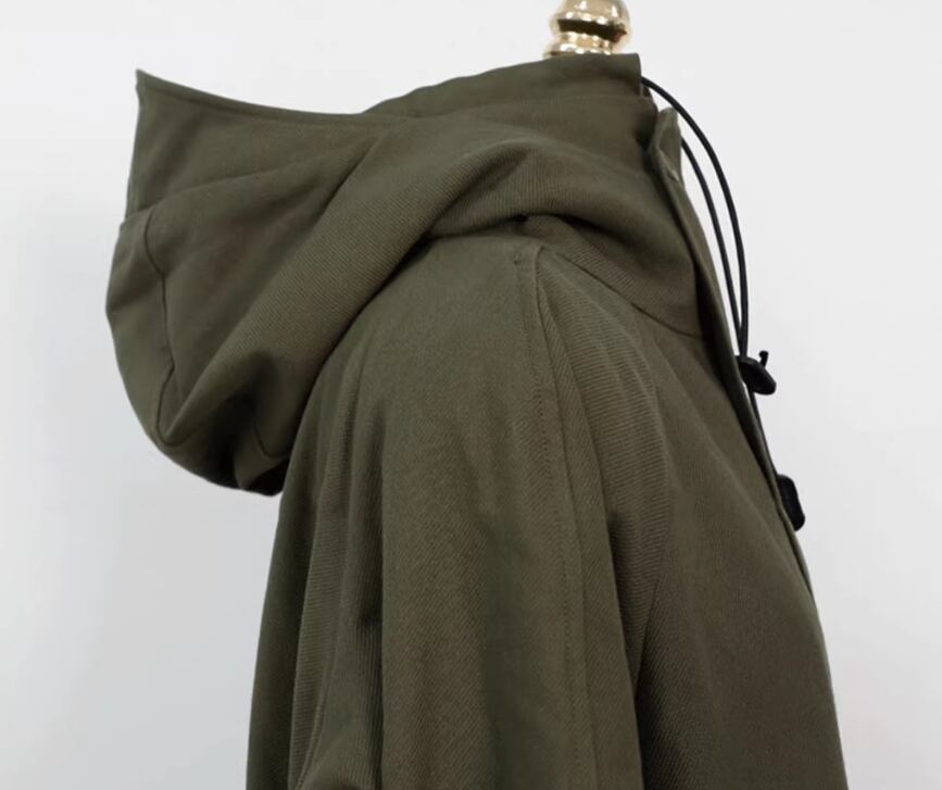 アウター コート 上着 ロング丈 袖あり 長袖 ワイド フード付き ポケット 綿 シンプル カジュアル おしゃれ お洒落 かっこいい こなれ感 メンズライク 存在感 無地 春 秋 10代 20代 30代 40代 レディース 女性用 ママ マタニティ お出かけ 休日 旅行 着回し 普段使い 重ね着 楽ちん 体型カバー S M L XL 黒 ブラック アーミーグリーン