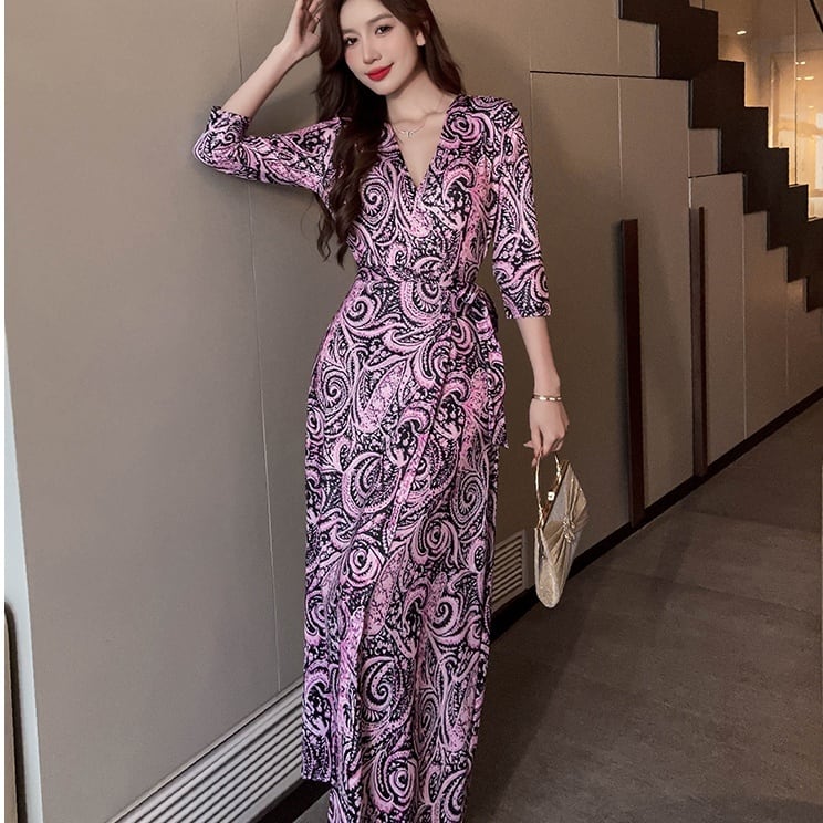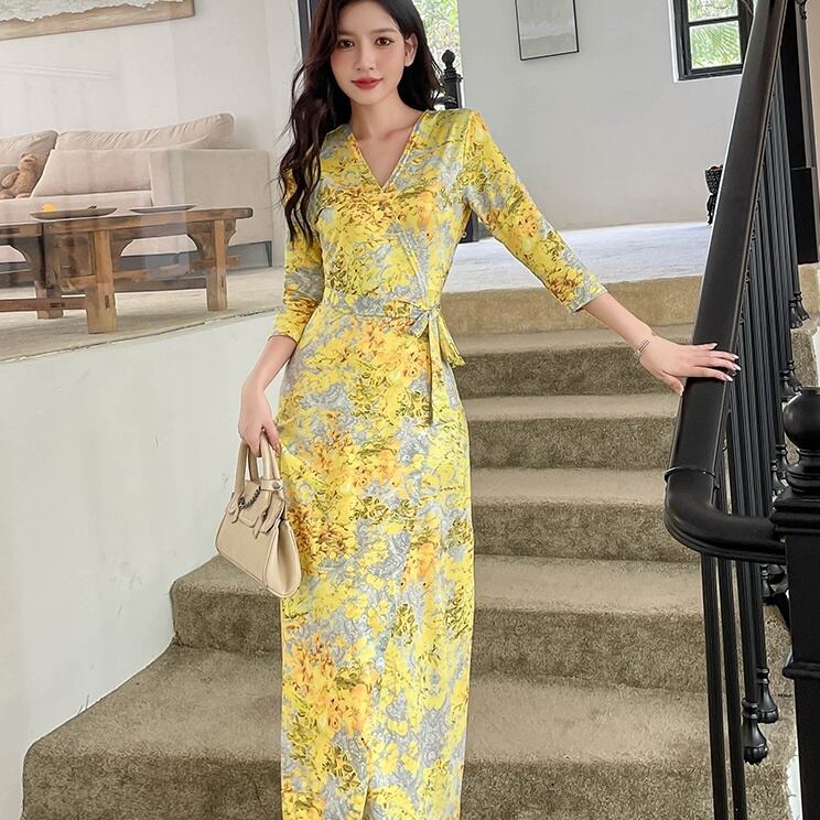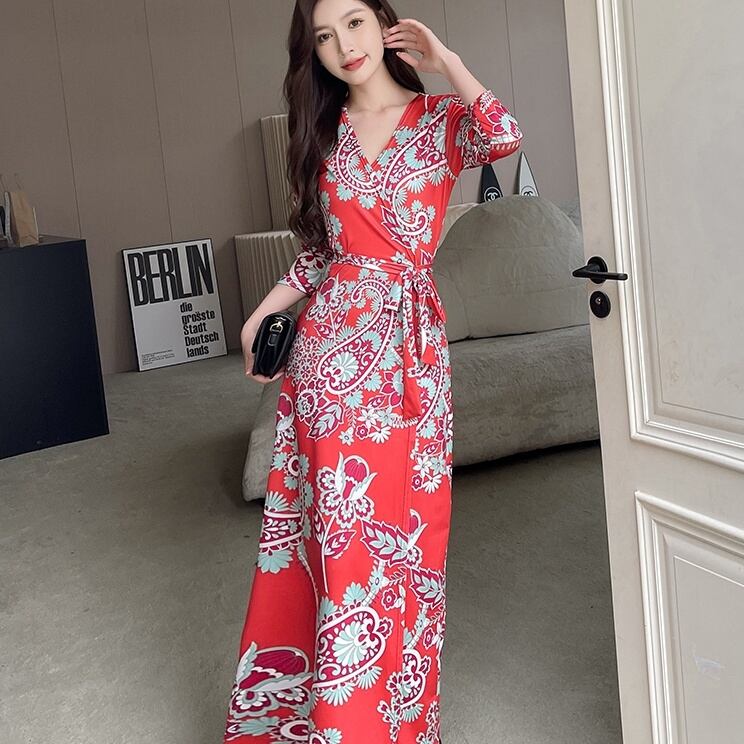 ワンピース マキシ丈ワンピース 7分袖 深Vネック 胸元 マキシ丈 ウエストマーク 前開き かわいい 大人可愛い きれいめ シンプル 上品 おしゃれ かっこいい レトロ こなれ感 個性的 主役級 存在感 抜け感 オールシーズン クール フォーマル セクシー レディース 女性用 ママ デート お出かけ お泊まり イベント 女子会 休日 カフェ ショッピング レストラン 旅行 リゾート バカンス コンパ パーティー 二次会 レイヤード 重ね着 普段使い 着回し 脚長 S M L XL 2XL モテ