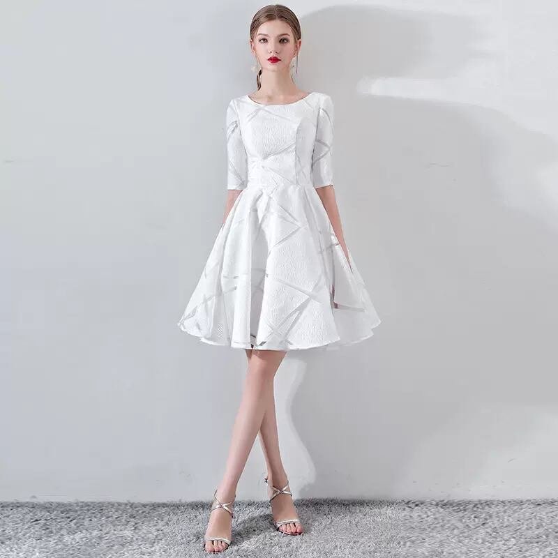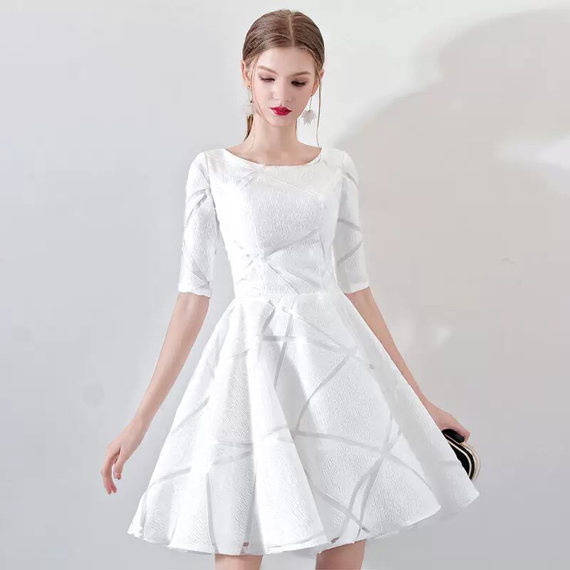 ドレス ウェディング パーティー 結婚式 二次会 披露宴 謝恩会 ショート 半袖 ラウンドネック フレア 細身 Aライン 刺繍 ハイウエスト 可愛い きれいめ シンプル カジュアル 大人可愛い おしゃれ キュート ガーリー 華やか 韓国 脚長 シーズンレス XS 2XL 3XL S M L XL スリム ホワイト