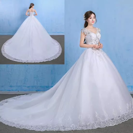 お手元に届いたとき、その美しさに驚きと感動を覚えること間違いなしの一着。輝くような刺繡と透け感のあるシースルーが、ウエディングドレスやパーティードレスとして一層の輝きを与えてくれるでしょう。ウエストマークで女性らしいシルエットを演出し、どこから見ても美しいドレスです。シンプルかつ個性的なデザインで、主役級の存在感を放つこと間違いなし。