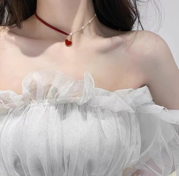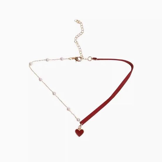 ネックレス かわいい 大人可愛い きれいめ シンプル カジュアル 上品 おしゃれ レトロ クール オールシーズン オフィス OL デート お出かけ イベント 女子会 休日 ショッピング カフェ ハート レッド ブラック