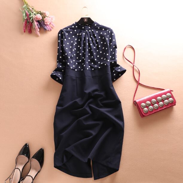 ワンピース ミモレ丈ワンピース 長袖 ハーフボタン ミモレ丈セミフレア ウエストマーク かわいい 大人可愛い きれいめ シンプル 上品 おしゃれ かっこいい レトロ ラフ ルーズ こなれ感 個性的 主役級 存在感 抜け感 クール フォーマル ナチュラル ベーシック ドット柄 オールシーズン レディース 女性用 OL 通勤 オフィス 学生 通学 デート お出かけ お泊まり イベント 女子会 休日 カフェ ショッピング 旅行 リゾート コンパ レストラン普段使い 着回し 脚長 L XL 2XL 3XL