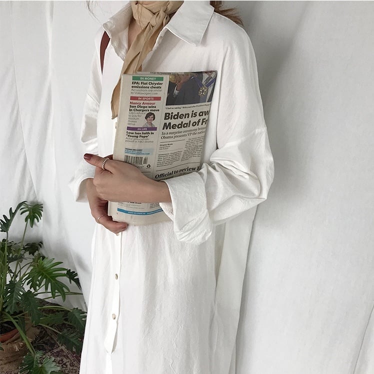 トップス シャツ ロングシャツ ロング丈 長袖 角襟 前開き ボタン シャツワンピース 2way かわいい 大人可愛い きれいめ シンプル 上品 おしゃれ かっこいい レトロ きちんと こなれ感 個性的 主役級 存在感 抜け感 オールシーズン キュート ナチュラル ベーシック メンズライク 無地 レディース 女性用 ママ OL 通勤 学生 通学 デート お出かけ お泊まり イベント 女子会 休日 アウトドア カフェ ショッピング レストラン コンパ レイヤード 重ね着 普段使い 着回し S M L XL