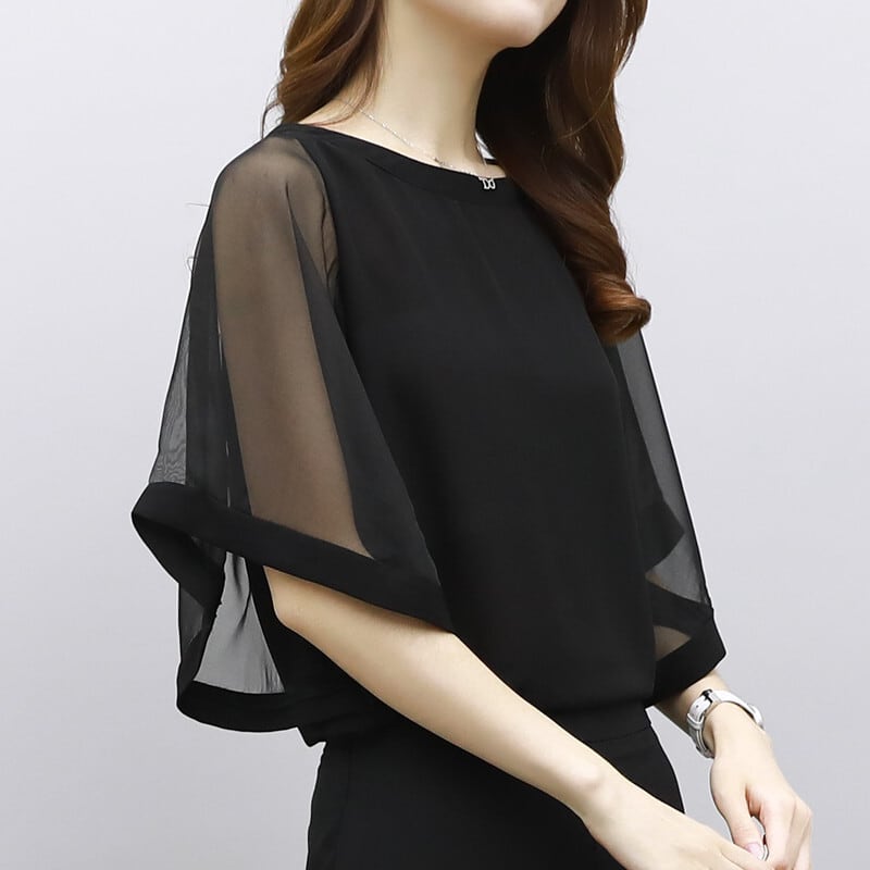 トップス ブラウス プルオーバー 5分袖 ラウンドネック ミディアム丈 シースルー かわいい 大人可愛い きれいめ シンプル 上品 おしゃれ かっこいい カジュアル レトロ きちんと こなれ感 個性的 主役級 存在感 抜け感 春 夏 ナチュラル ベーシック フォーマル エレガント 無地 レディース 女性用 ママ OL 通勤 オフィス 学生 通学 デート お出かけ お泊まり イベント 女子会 休日 アウトドア カフェ ショッピング レストラン コンパ レイヤード 重ね着 普段使い 着回し S M L XL
