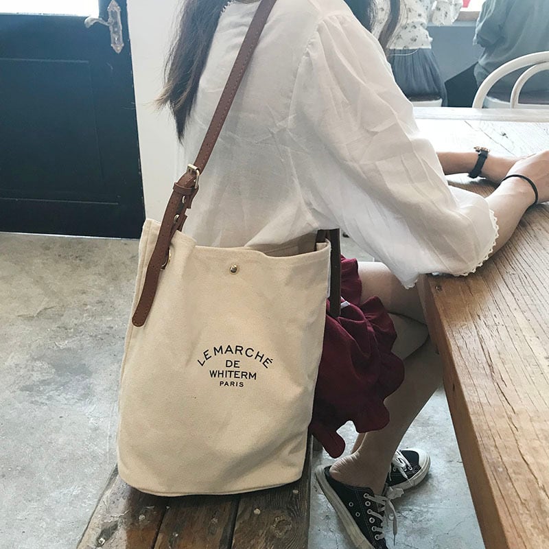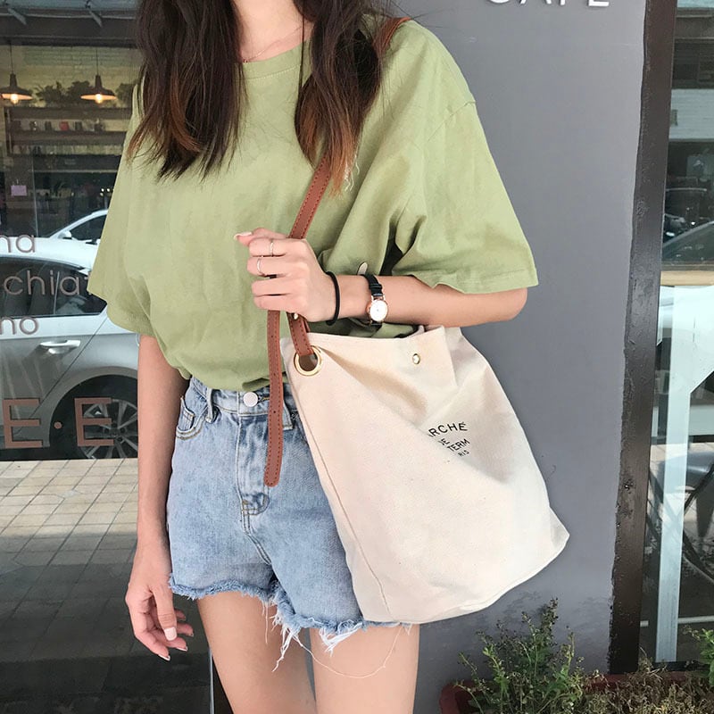 カジュアルなキャンパストート。上帆布とフェイクレザーの持ち手のコンビネーションで、大人可愛いスタイルに仕上げました。シンプルでありながら、女性らしいこなれ感やラブリーさを演出するアイテムです。