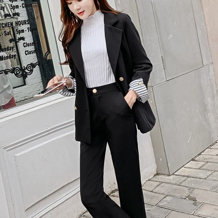 2点セットのセットアップパンツスーツは、着心地の良さとスタイリッシュさを兼ね備えたアイテムです。