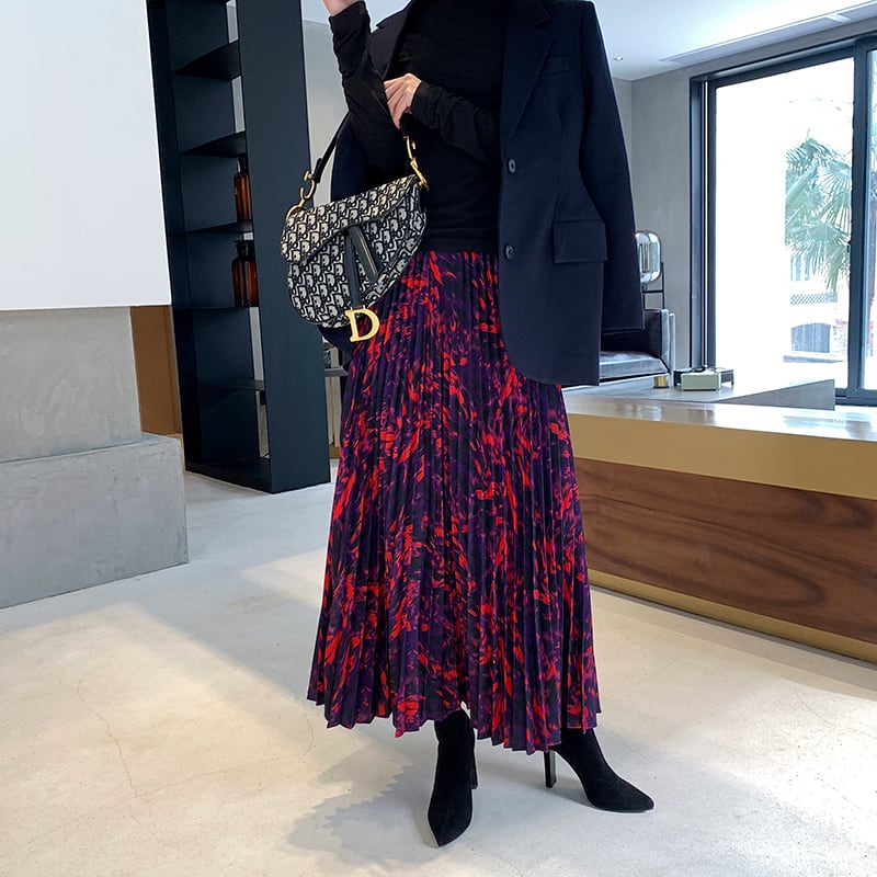 一枚で女性らしさを引き立てる、プリーツスカート。