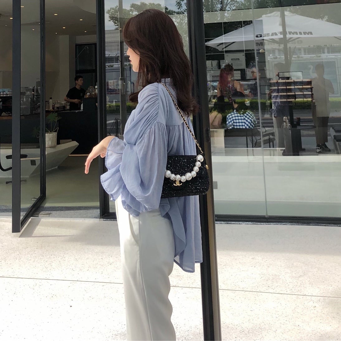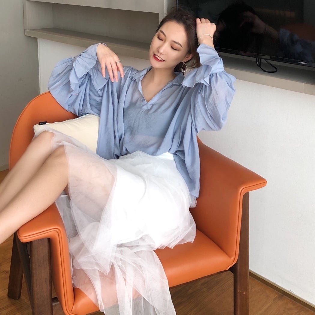 シースルー素材が優雅な透け感をプラスした、トップス 。