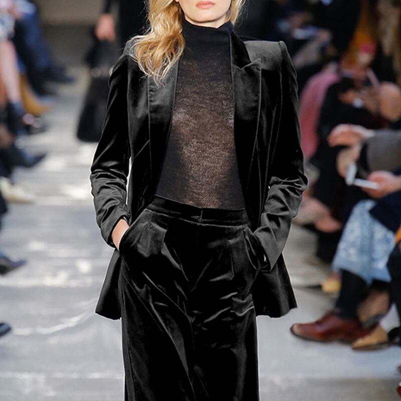 2点セット セットアップ パンツスーツ ミディアム丈 ジャケット 長袖 襟付き Vネック 前開き ボタン ポケット ロングパンツ ハイウエスト ベルベット かわいい 大人可愛い きれいめ シンプル 上品 おしゃれ かっこいい レトロ きちんと こなれ感 個性的 主役級 存在感 抜け感 秋 冬 ナチュラル ベーシック エレガント レディース 女性用 ママ OL 通勤 デート お出かけ お泊まり イベント 女子会 休日 カフェ ショッピング レストラン コンパ 普段使い 着回し XS S M L