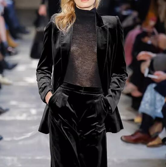 セットアップ ジャケット 上着 ワイドパンツ ロング丈 袖あり 長袖 襟付き ハイウエスト ウエストゴム ベロア 上下セット 2点セット ツーピース 大人 上品 かっこいい レトロ エレガント 存在感 無地 秋 冬 20代 30代 40代 レディース 女性用 パーティー イベント 着回し 普段使い 楽ちん S M L XL 黒 ブラック 青 ブルー 灰色 グレー