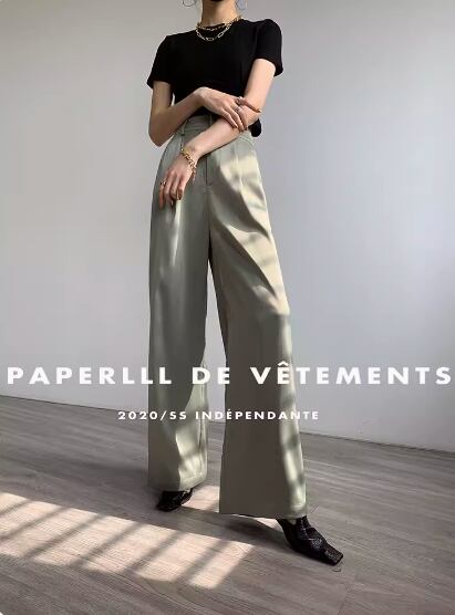 ボトムス パンツ ワイドパンツ ロング丈 ハイウエスト ポリエステル きれいめ シンプル カジュアル 大人 上品 おしゃれ お洒落 かっこいい こなれ感 エレガント とろみ感 無地 春 夏 秋 10代 20代 30代 40代 レディース 女性用 お出かけ 休日 着回し 普段使い L XL ゆったり 緑 グリーン ベージュ