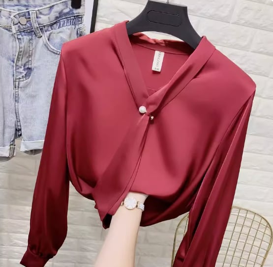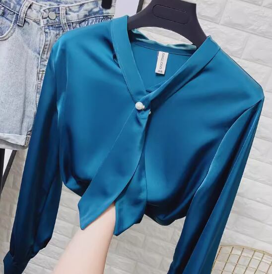 トップス シャツ ブラウス 袖あり 長袖 スタンドカラー ストレート リボン きれいめ シンプル カジュアル 大人 上品 おしゃれ お洒落 レトロ 大人女子 こなれ感 存在感 フォーマル とろみ感 無地 春 夏 秋 冬 オールシーズン 20代 30代 40代 レディース 女性用 通勤 お出かけ 着回し 普段使い 重ね着 フリーサイズ 赤 レッド 青 ブルー